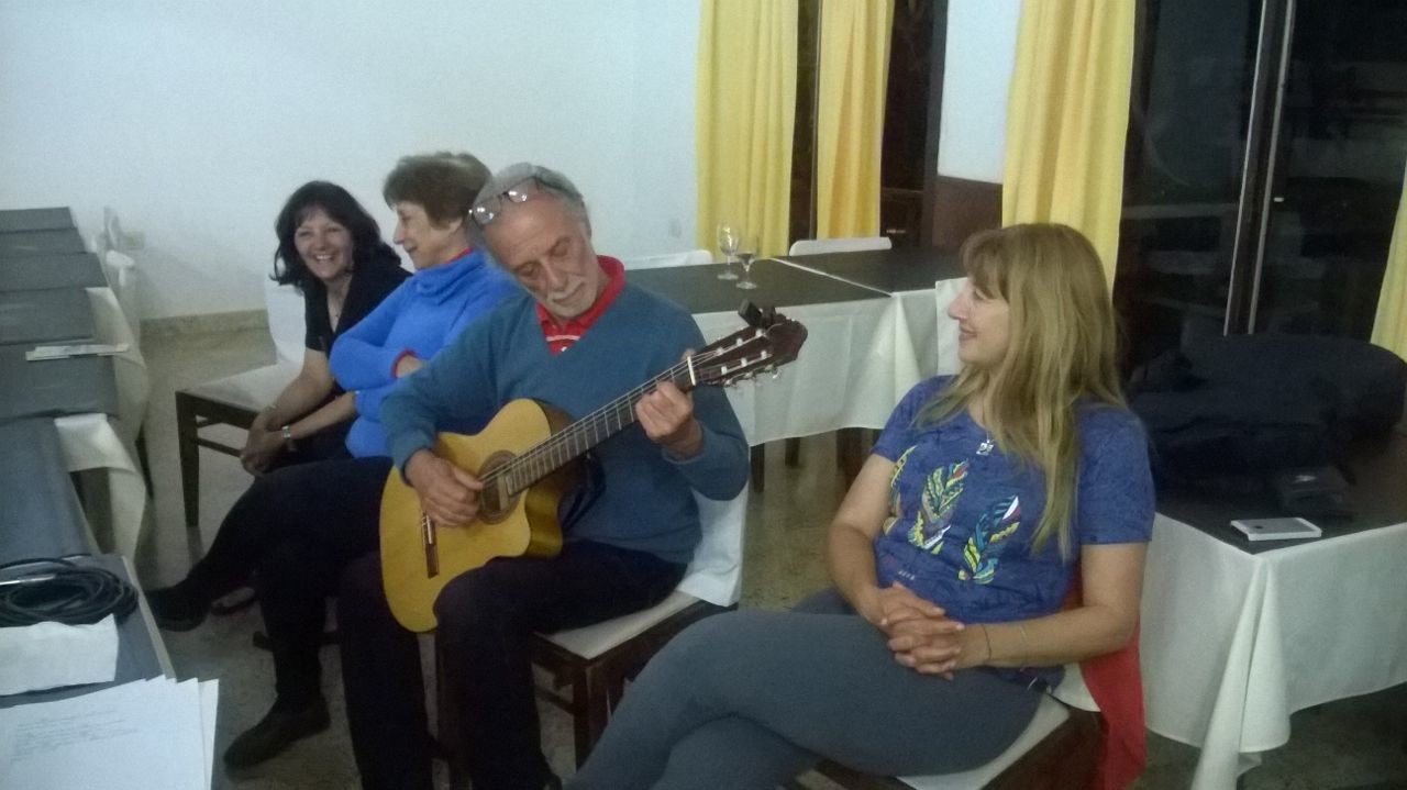 En el último día, el Día del Maestro, se festejó el día y cada uno decidió vivir un poco más de lo que más disfruto, comprar regalos o yerba, descansar y tomar sol en la pileta. El cierre infaltable del día llegó con la música que interpretó el grupo y, luego de varias guitarreadas nocturnas, los compañeros definieron que lo mejor era llevar un dúo autóctono que los deleitó con sus canciones. ¡La coordinadora participó como cantante del show y algunos compañeros sorprendieron con sus talentos, pudieron haber estado horas cantando zamba, boleros y bailando chacarera! Además, la compañera Alicia les regaló una poesía bellísima.