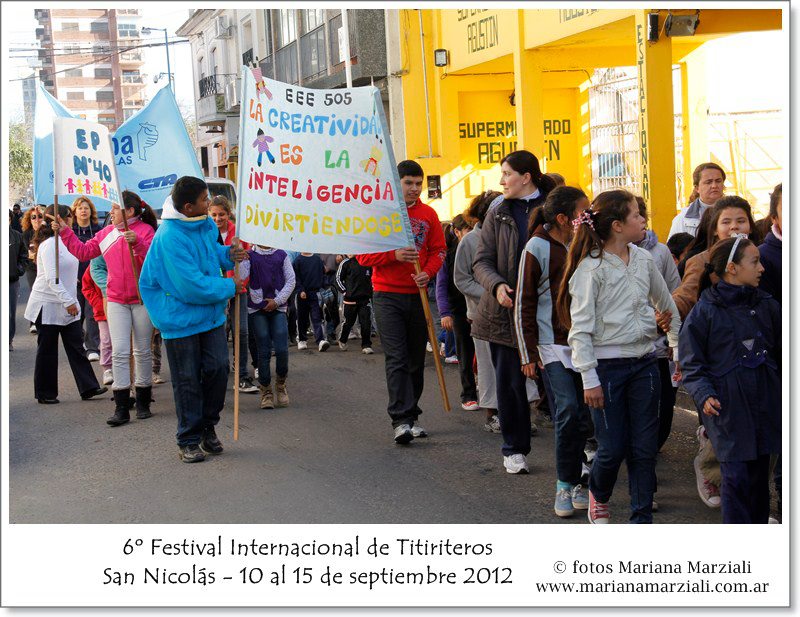 Títeres, cabezudos, batucadas, caravanas de apertura y cierre del festival… una verdadera fiesta que copó las calles de San Nicolás, Ramallo, Pergamino, Rojas, Arrecifes y Capitán Sarmiento con cabezudos hechos en las escuelas por los pibes con sus profesores. Una verdadera fiesta y un cierre espectacular con los adolescentes conmemorando la noche de los lápices!!!