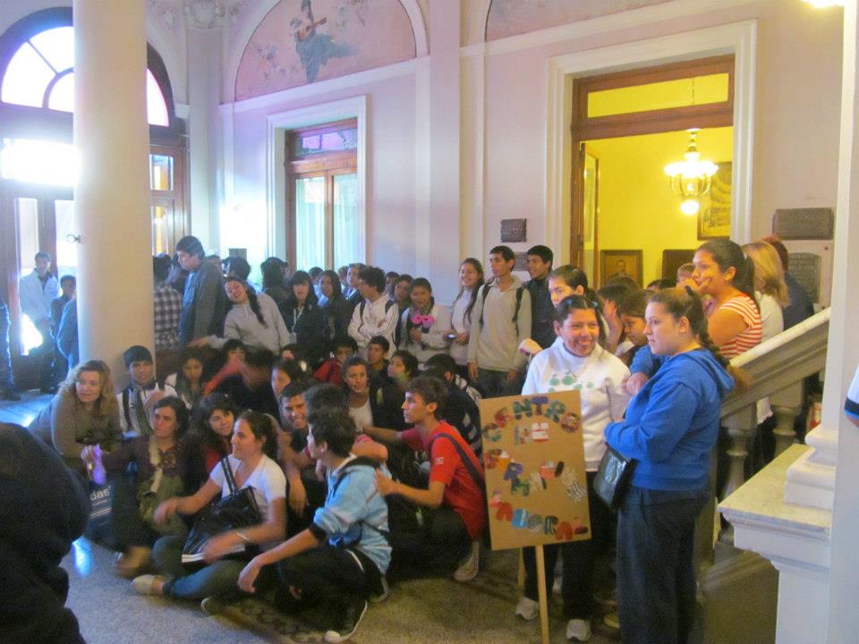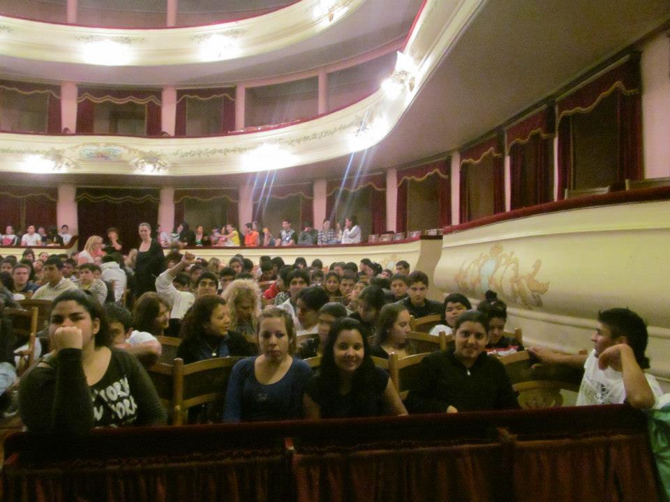 “¡Aquí también se enseña!”, era la consigna, y los pibes y los profes se fueron con la inquietud de trabajar sobre los temas musicales que dan argumento al espectáculo.