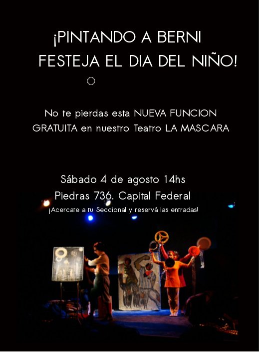 La obra, que cuenta con los apoyo del Instituto Nacional del Teatro, de Cultura BA y de Proteatro, fue presentada en nuestro Teatro La Máscara de manera gratuita para todos los afiliados y sus grupos familiares.