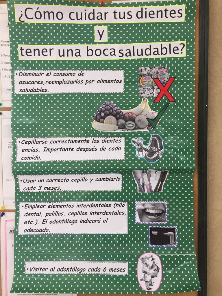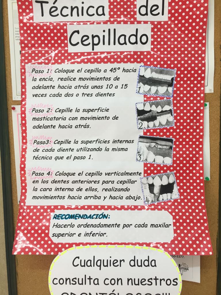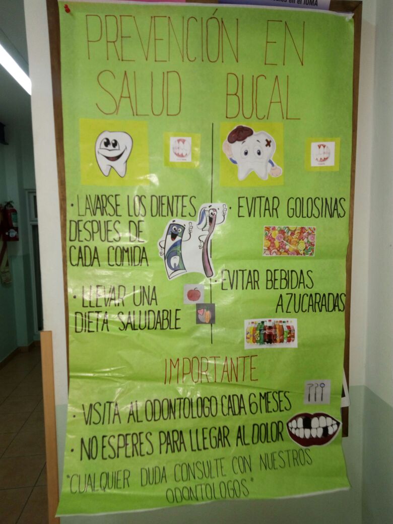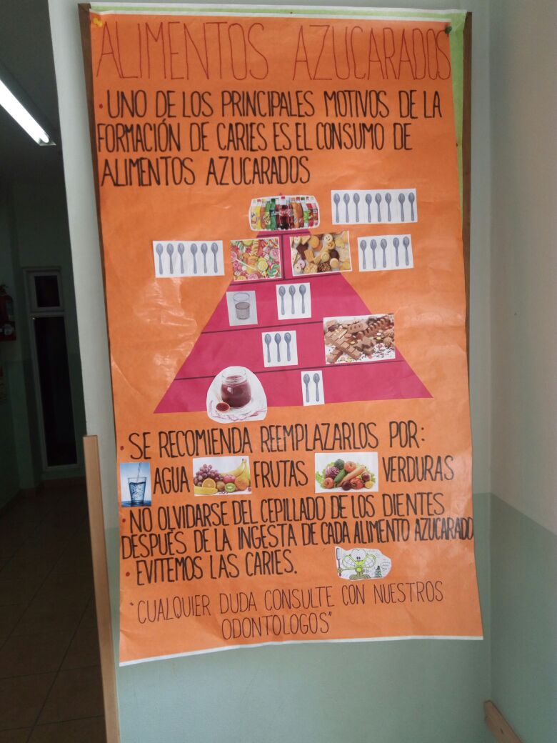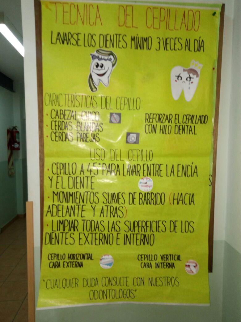 A partir de la capacitación, las asistentes Camila Sombra y Elizabeth Acevedo (del Centro de Salud "1ro de Junio" de Morón) y la asistente Claudia Ferretti (del Centro de Salud "Maria C. Cournou" de Moreno) confeccionaron distintas carteleras para informar a lxs pacientes sobre Salud bucal, técnicas de cepillado, consumo de azúcares, etc.