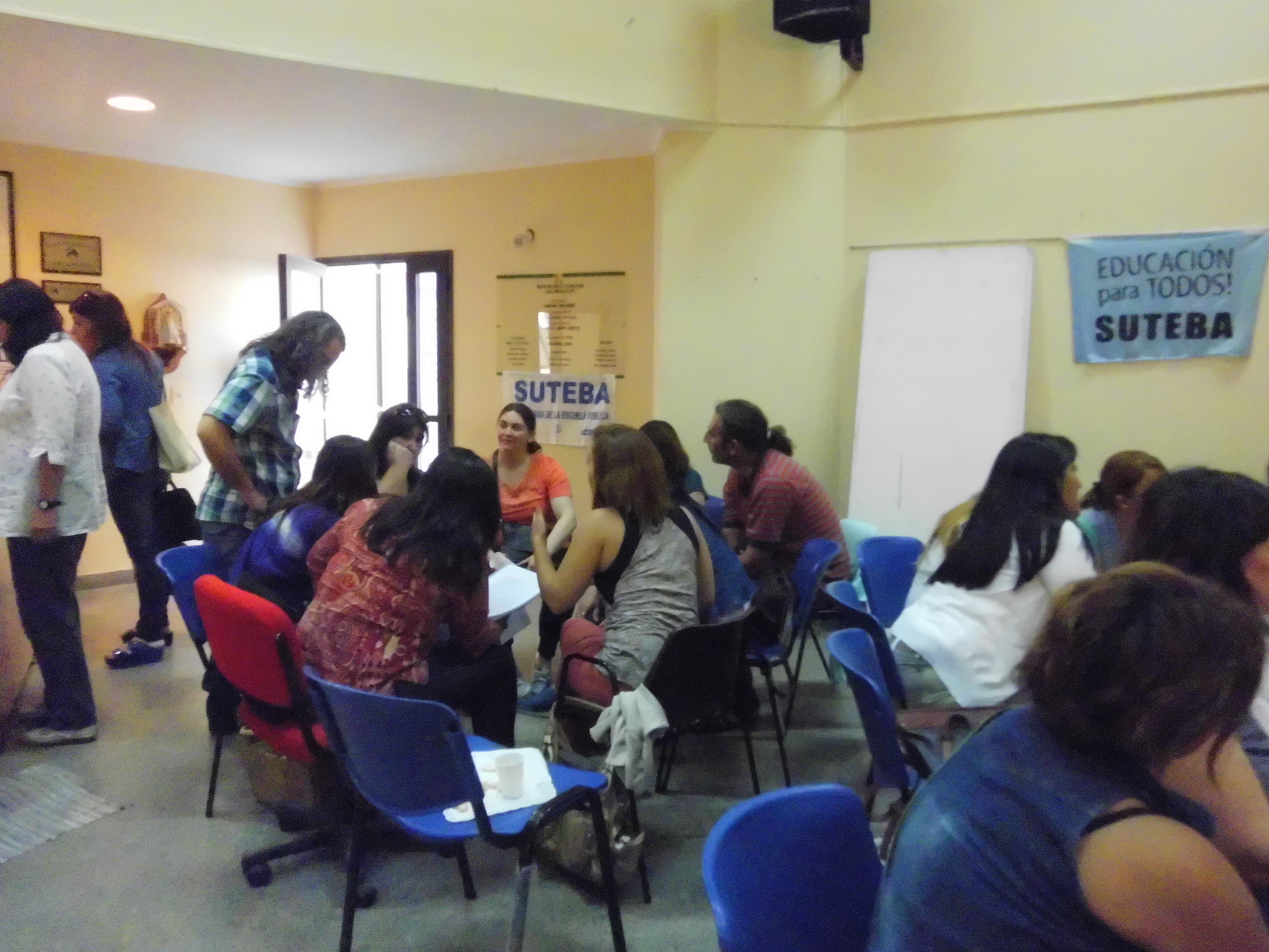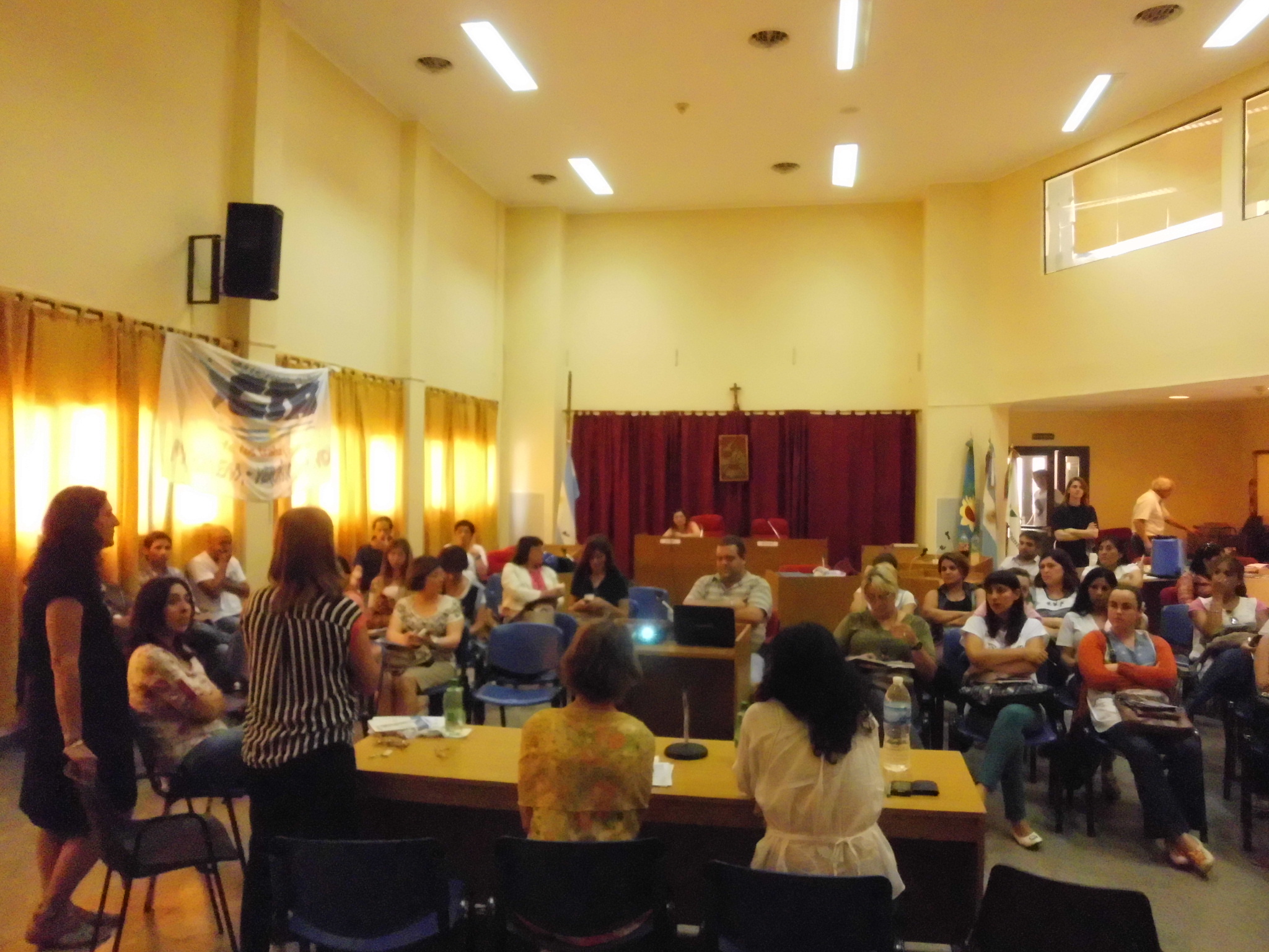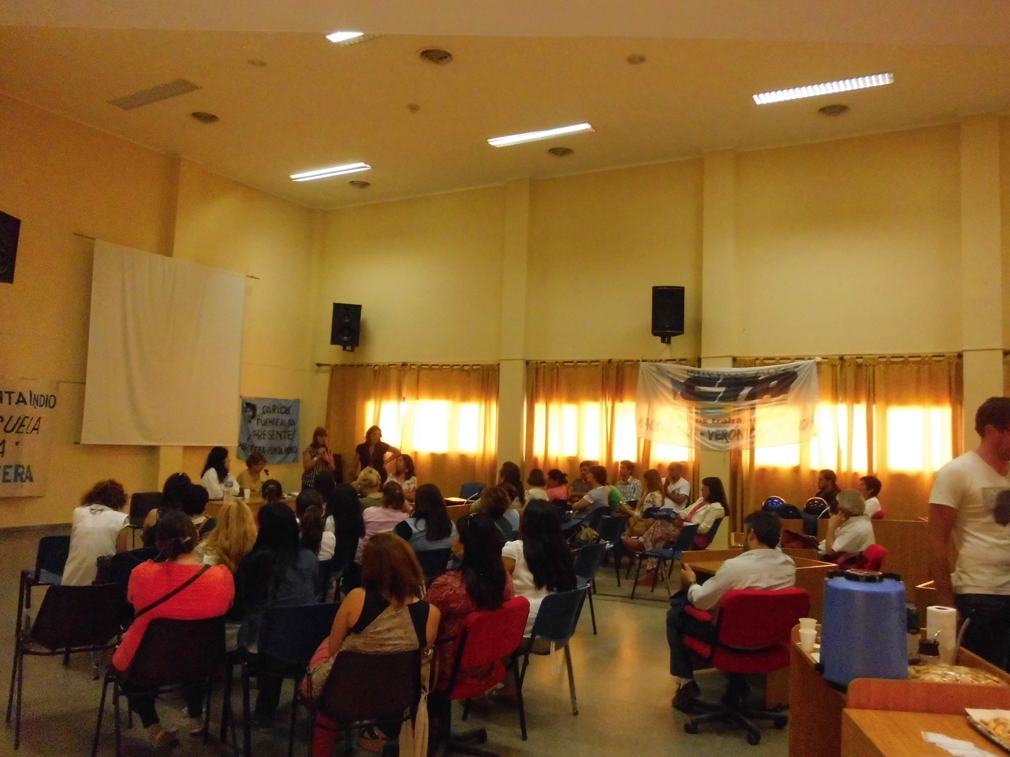 Una numerosa concurrencia de más de 50 compañeros trabajó sobre problemáticas y conflictos que suceden a diario en las escuelas, aportando sus experiencias personales y también debatiendo por soluciones a través de unas proyecciones propuestas por los disertantes.