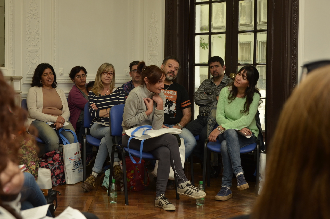 La presentación del encuentro estuvo a cargo de la Secretaria de Educación y Cultura y la Secretaria Gremial de SUTEBA, Rosana Merlos y Marcela Escobar, respectivamente.