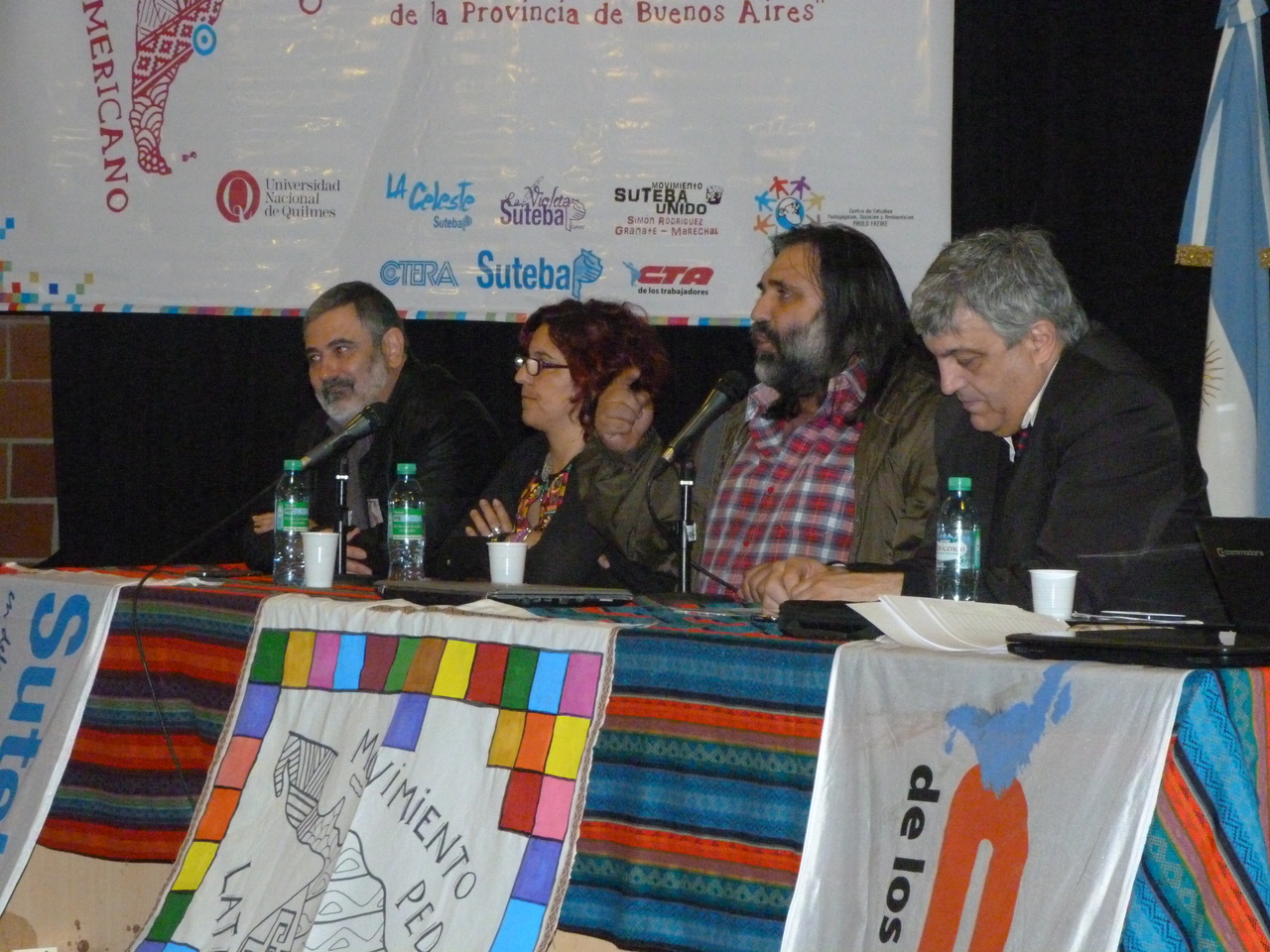 Las actividades continuaron con una mesa que contó con la presencia del Rector de la UNQ, Mario Lozano, junto al Secretario General del SUTEBA, Roberto Baradel, quien agradeció la presencia de cada Trabajador de la Educación y los llamó a seguir generando conocimientos para la realización de una educación emancipadora en toda Latinoamérica, empezando desde lo producido día a día en cada escuela.