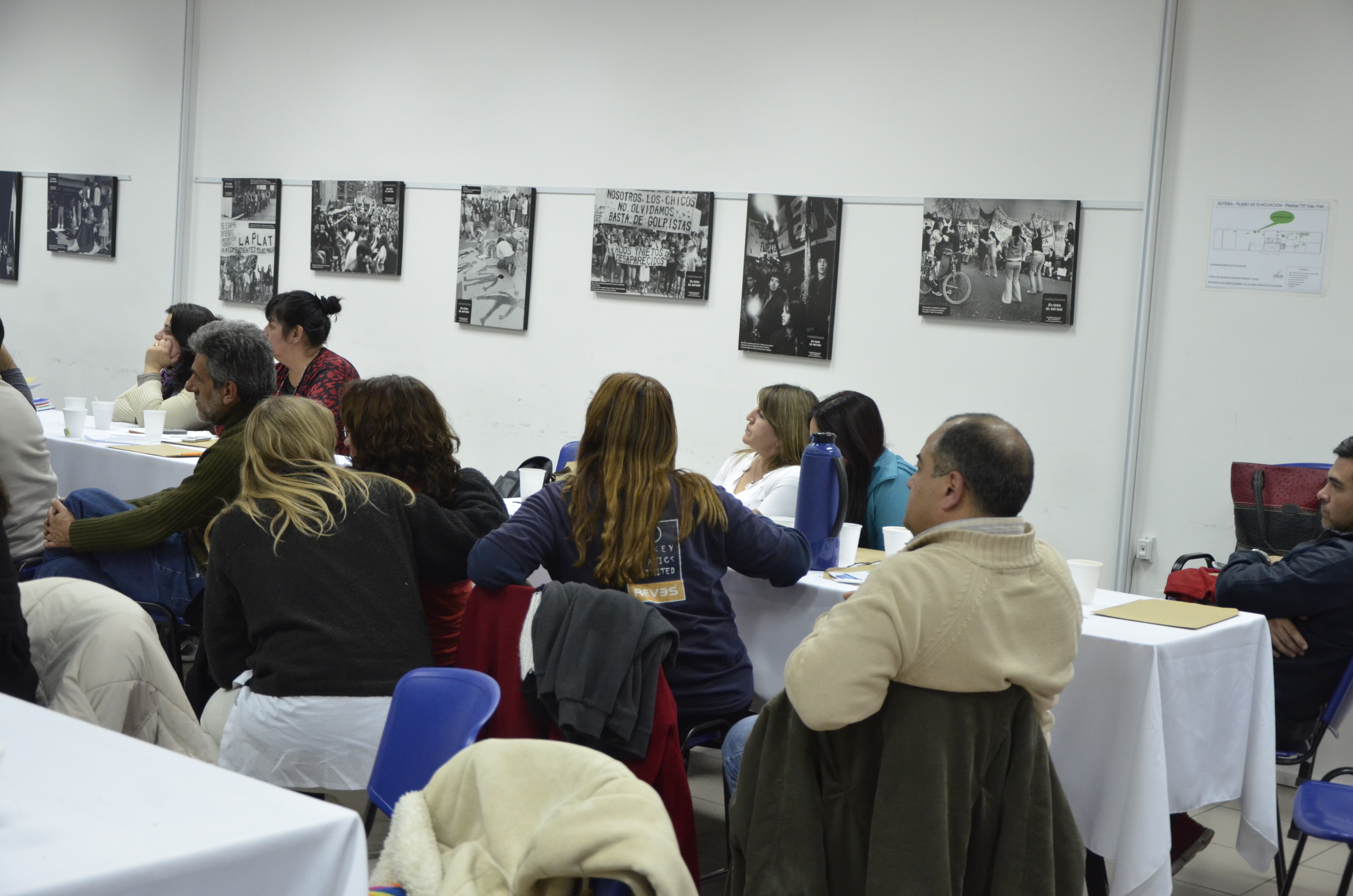 Por la tarde continuó el trabajo en talleres, donde los distintos grupos analizaron casos concretos de siniestros y situaciones de riegos en las instituciones educativas de la Provincia de Buenos Aires. La puesta en común en plenario, en la que se expusieron la Matriz de Responsabilidades y la propuesta de intervención sindical, permitió desentrañar problemáticas puntuales y avanzar en el desarrollo de aportes territoriales que los asistentes se llevaron como insumo de trabajo.