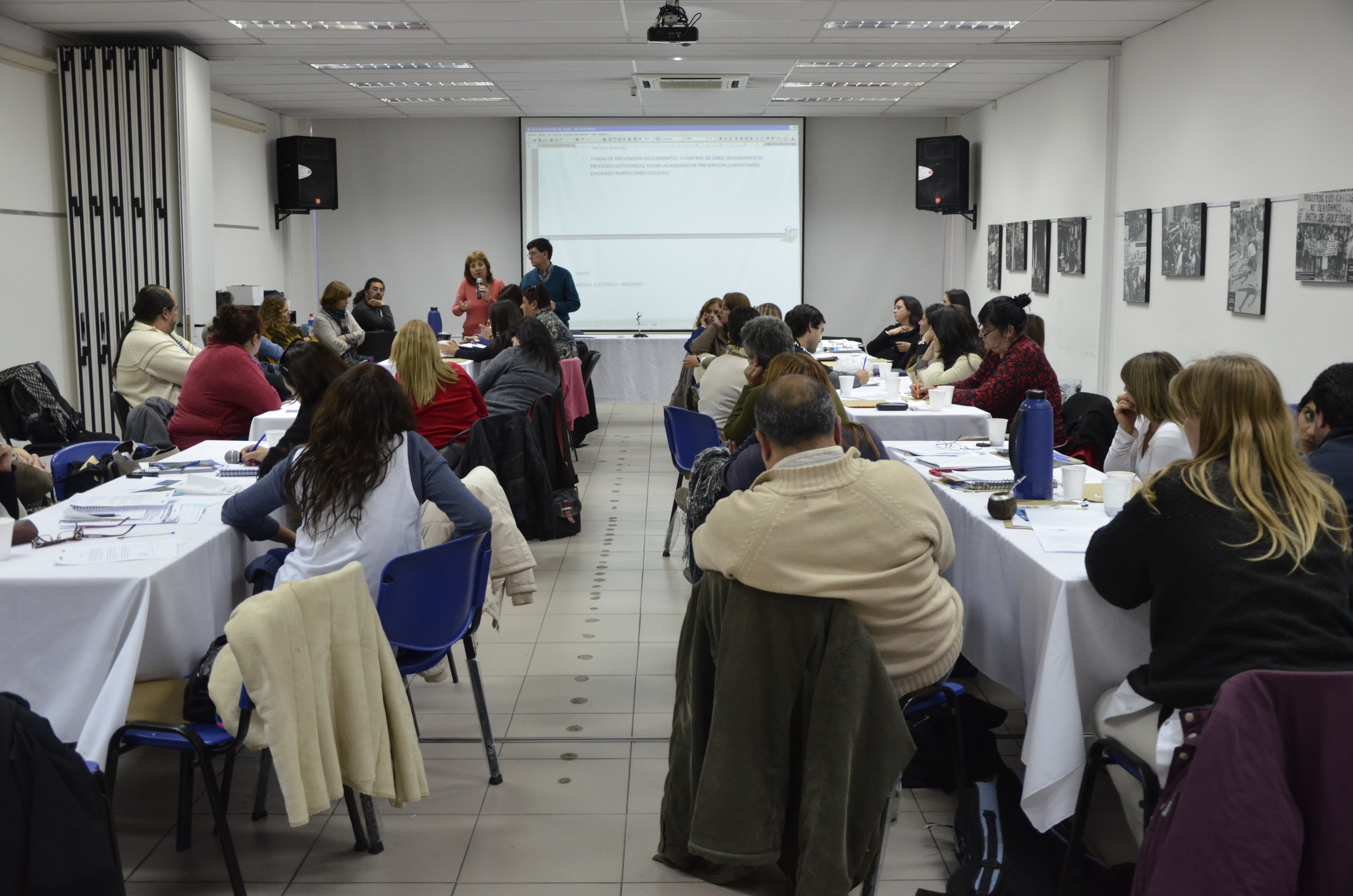La Subsecretaria de Salud Laboral, Mariana Molteni, dio la bienvenida a los Delegados Gremiales y Promotores de Salud asistentes al curso. Los capacitadores José Correa y Antonio Alarcón desarrollaron la temática de los Riesgos de Incendio y Eléctrico en los establecimientos educativos, y la Dra. Lilian Capone (Dir. de Salud Laboral del SUTEBA) abordó el tema de Riesgo Químico, ilustrando sus exposiciones con los aspectos teóricos inherentes y problemáticas concretas de instituciones relevadas donde intervino nuestra organización.