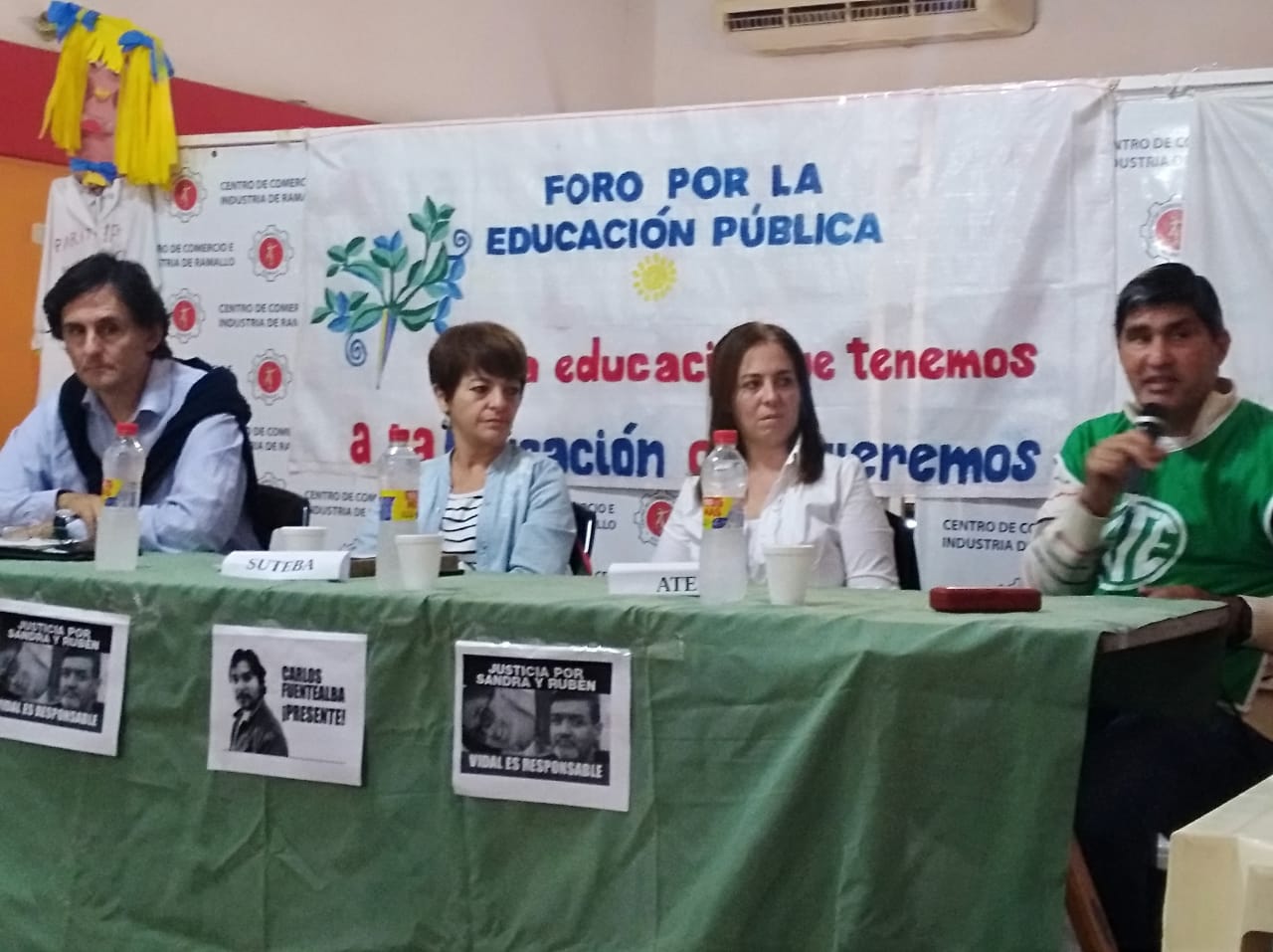 El sábado 6 de abril se realizó en Ramallo el Foro por la Educación Pública, concretado por el trabajo conjunto del SUTEBA, ATE y UDOCBA.