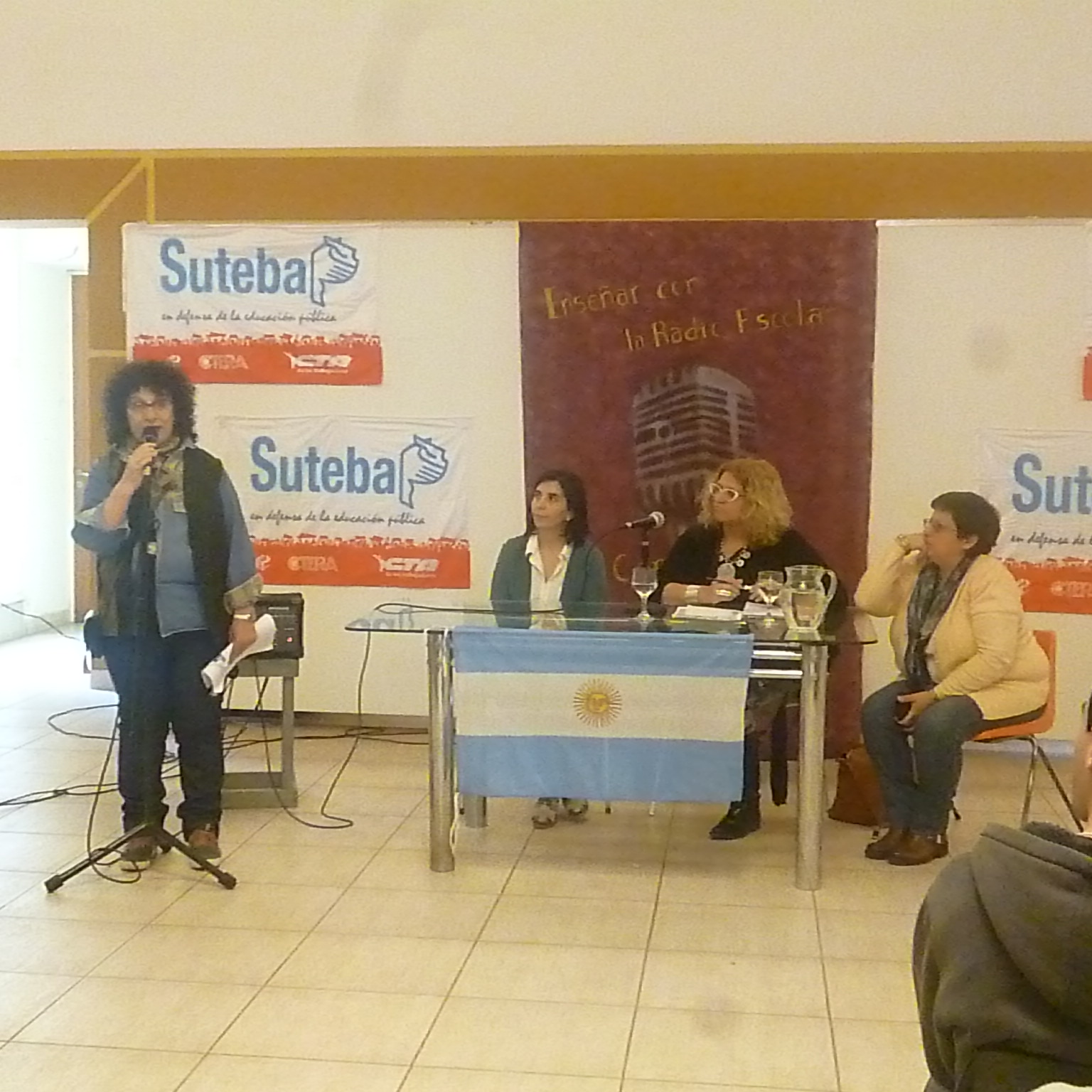 Para dar inicio al día, la bienvenida a todos los presentes estuvo a cargo de Marcela López, Secretaria de Comunicaciones del SUTEBA Rauch, y de Liliana Cirullo, Secretaria General del SUTEBA Rauch. Después de la apertura del bloque "Producción Radiofónica y Procesos Pedagógicos", llegó el turno de debatir sobre los proyectos que apuntaron a diferentes ejes para cada una de las escuelas, de distintos niveles y modalidades.