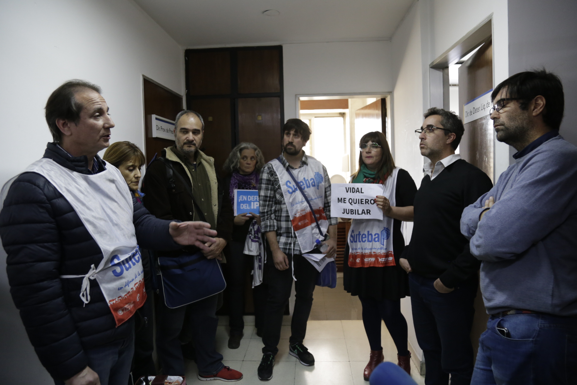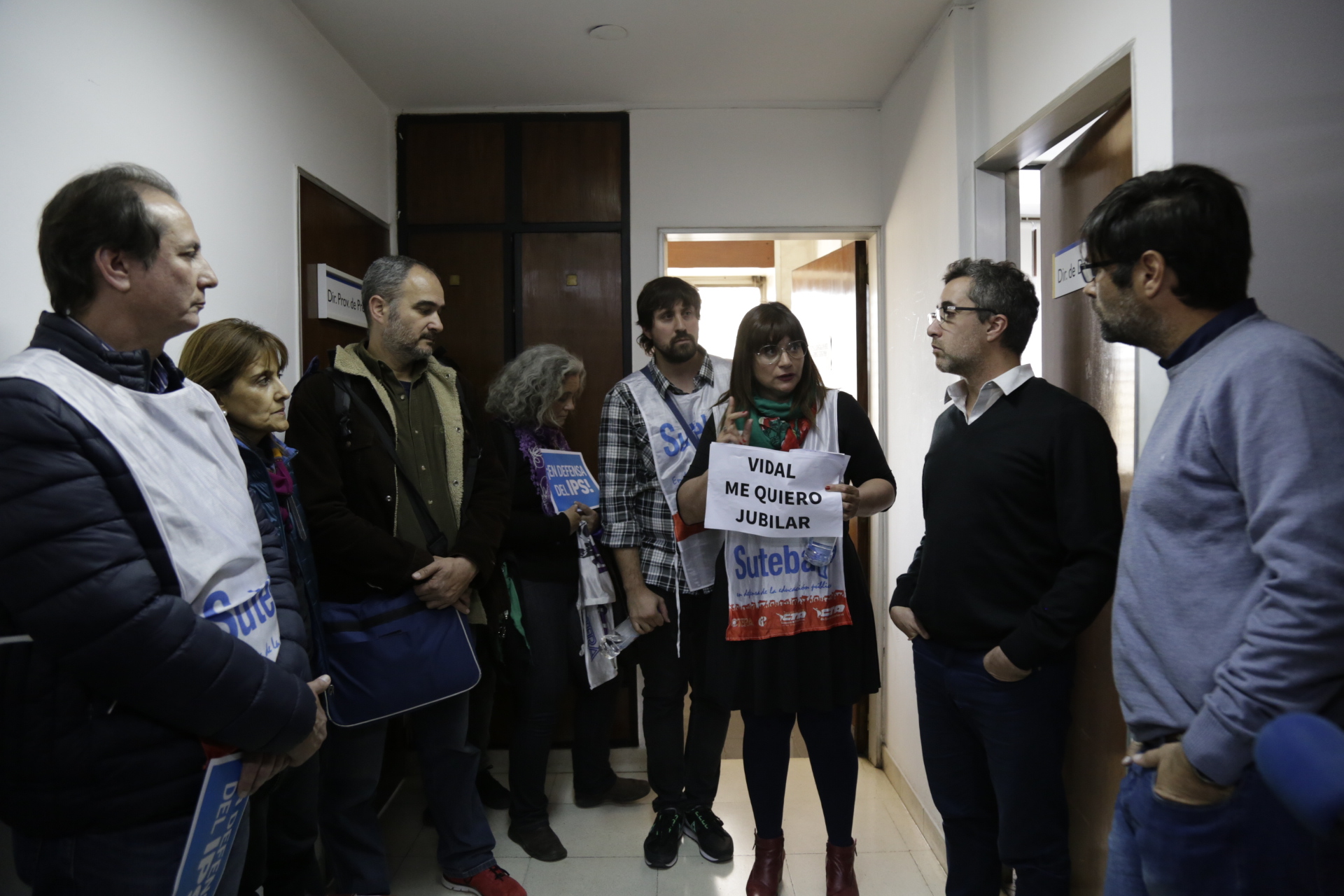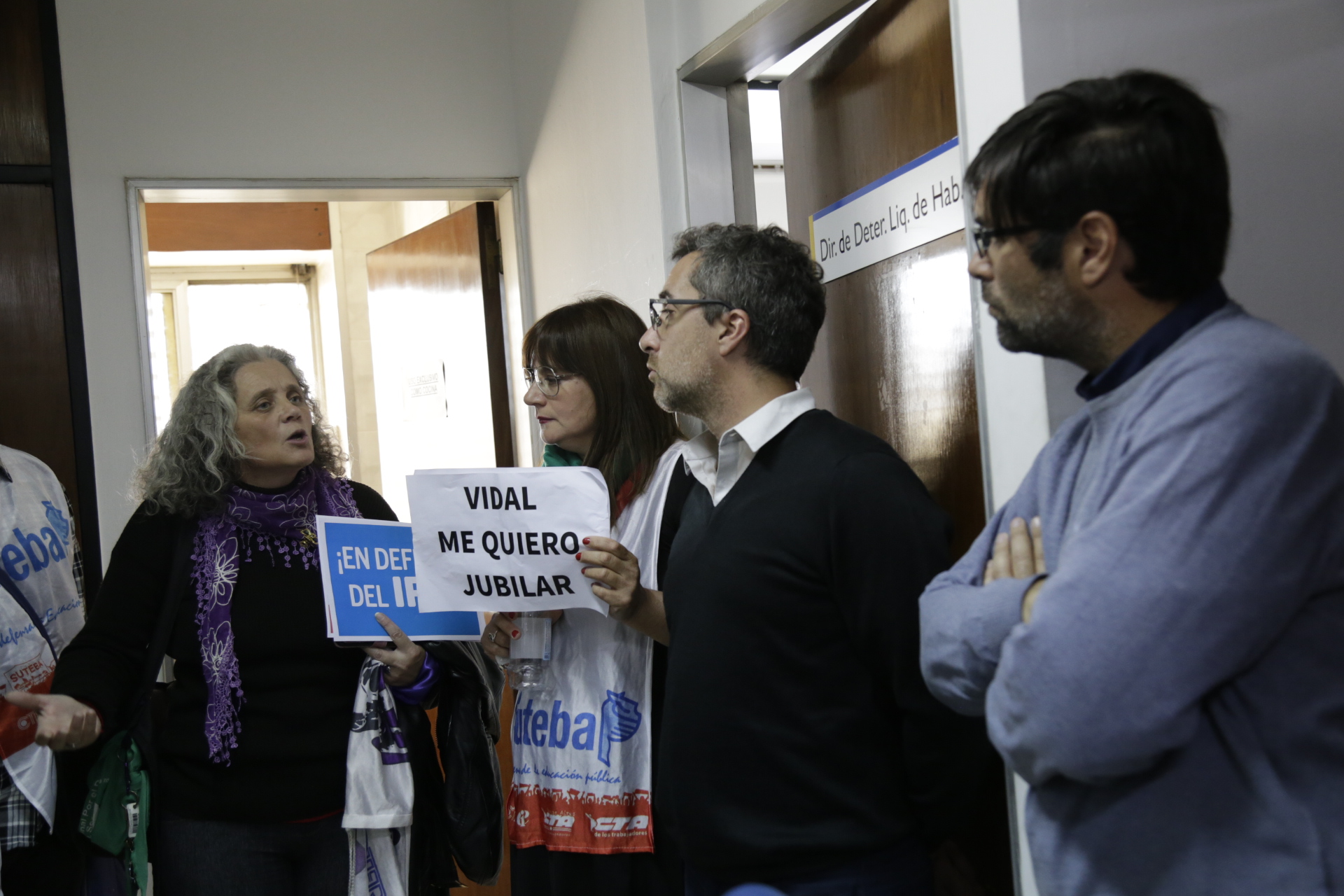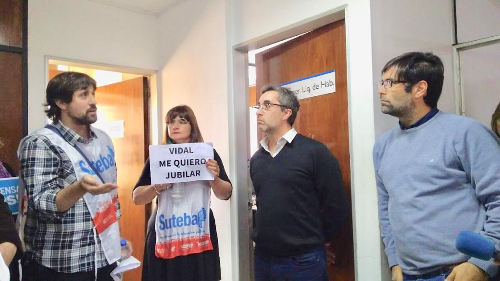 Luego de la jornada de lucha de ayer, Marina Mapelli, Secretaria de Jubilaciones; Marcelo Tolosa, representante gremial de lxs Docentes en el IPS; y Secretarixs de Jubilaciones de diversos distritos, se presentaron en la oficina de Determinación de Haberes, exigiendo ser atendidxs por las máximas autoridades. Permanecieron hasta ser recibidxs por el Jefe de Gabinete, Pablo Carrera, y el Director de Determinación y Liquidación de Haberes, Federico Meliá.