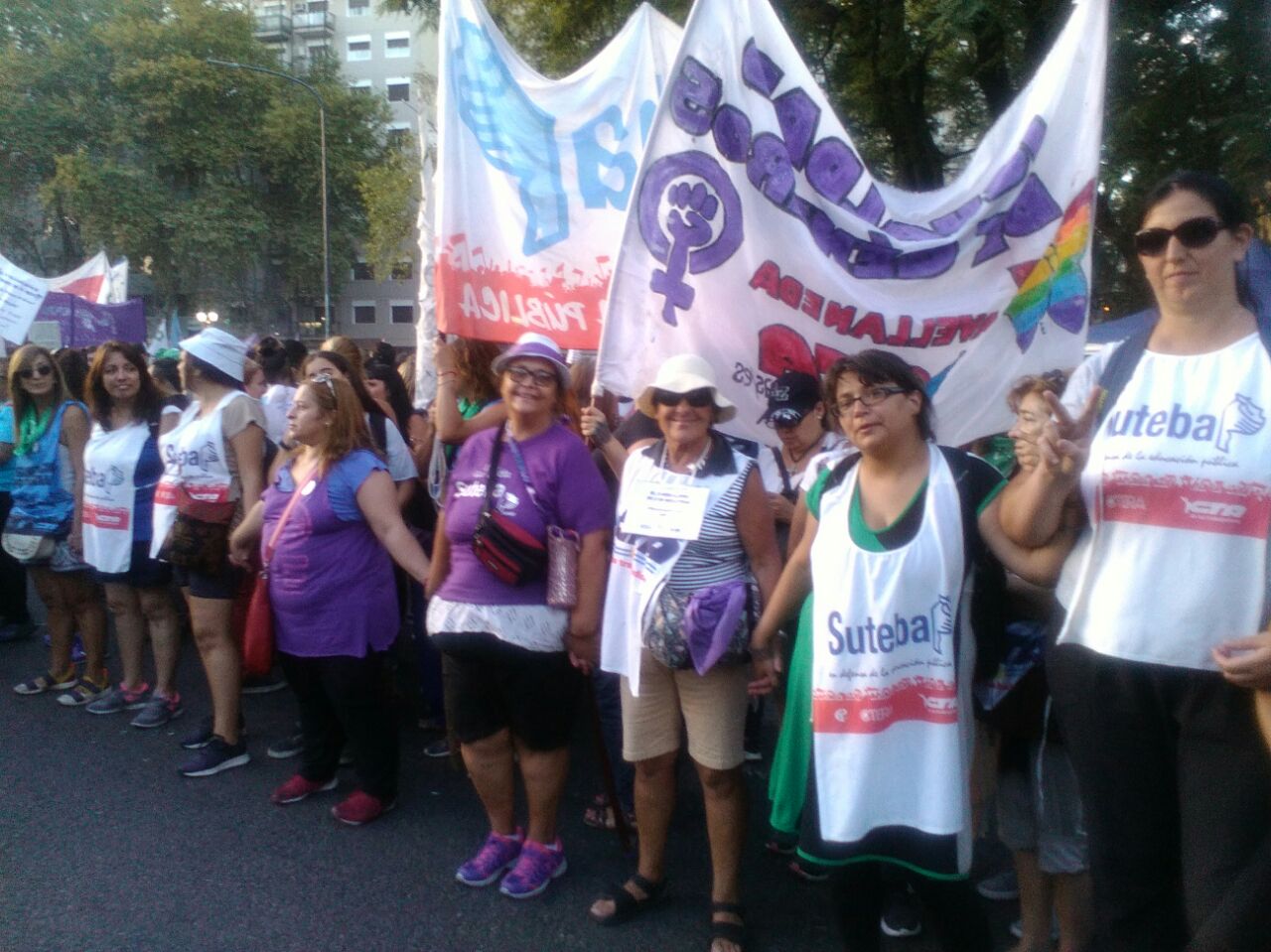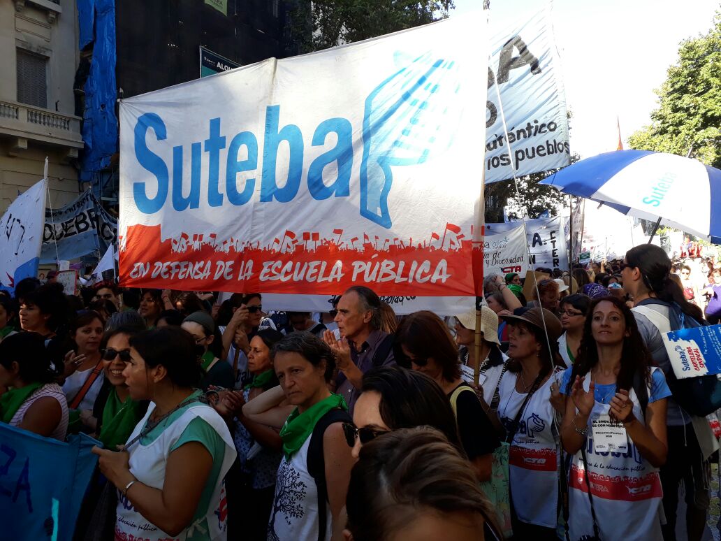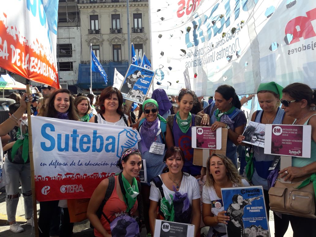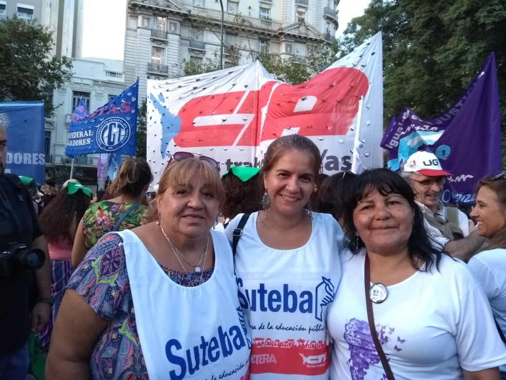 Asimismo, la Secretaria General Adjunta del SUTEBA, Silvia Almazán, expresó: "Es una nueva jornada histórica, construida desde las trabajadoras como integrantes del movimiento de mujeres que se está a dando a nivel mundial, intentando avanzar en la construcción de derechos, no sólo en políticas de género, sino también combatiendo la explotación y la precarización laboral. Reclamamos por políticas de estado y gobiernos que garanticen los derechos de las mujeres trabajadoras".