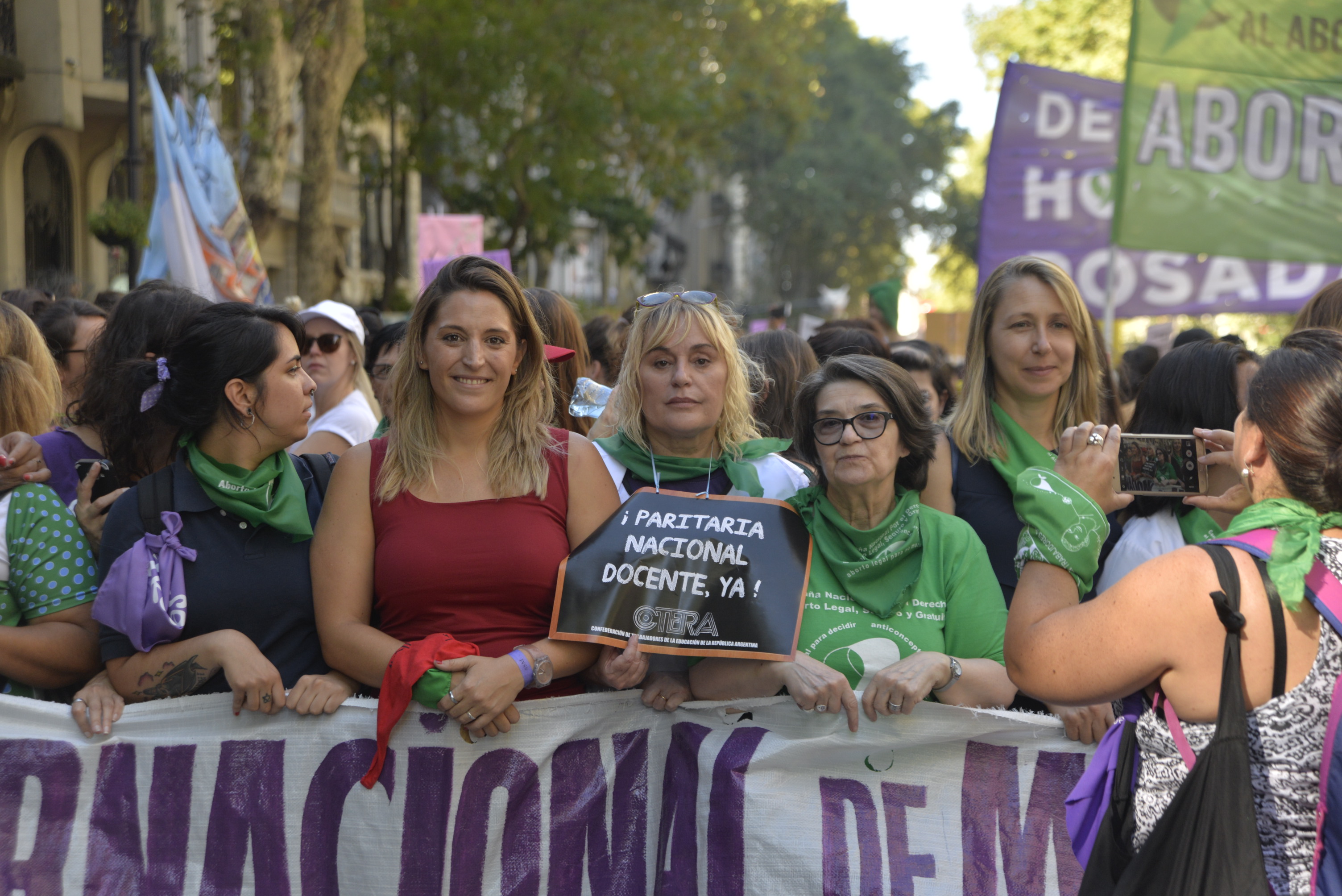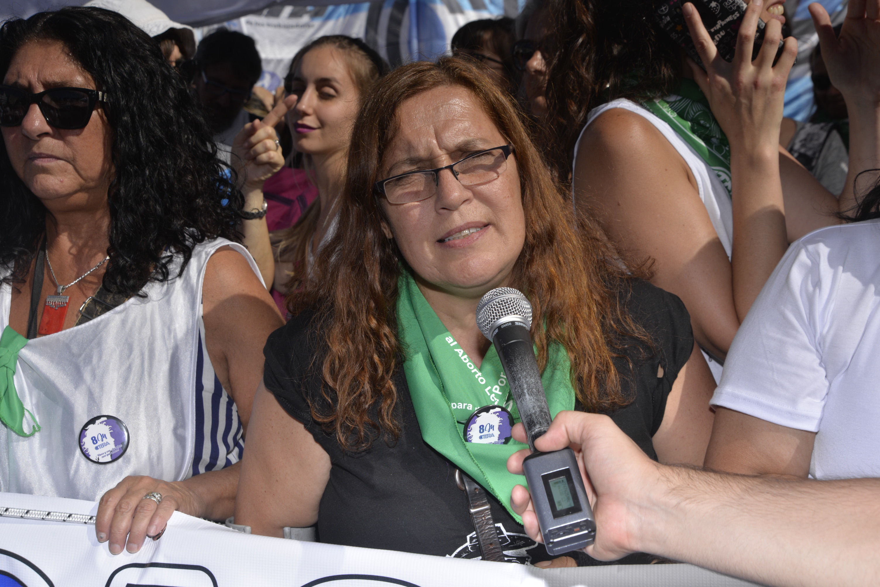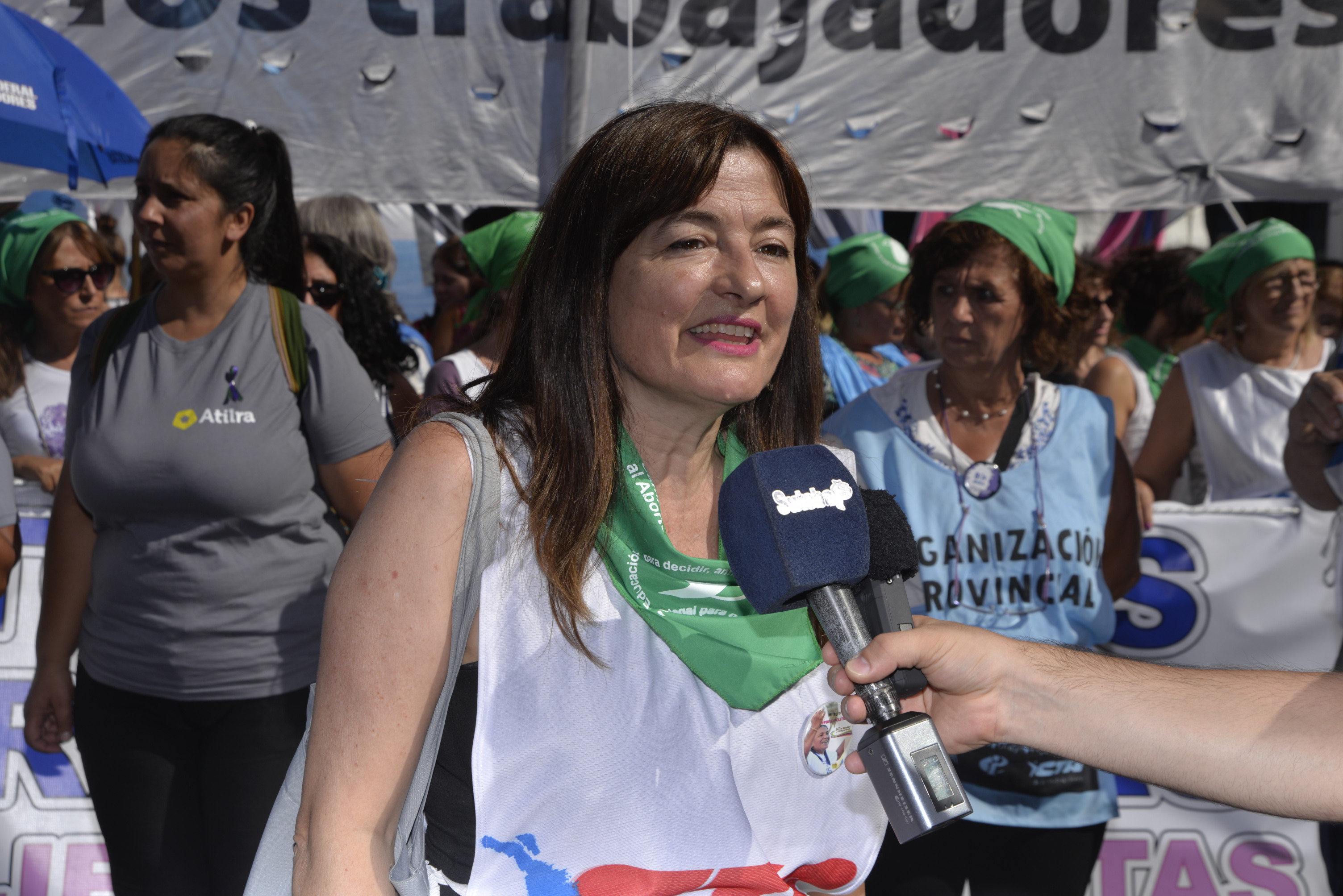 Asimismo, la Secretaria General Adjunta del SUTEBA, Silvia Almazán, expresó: "Es una nueva jornada histórica, construida desde las trabajadoras como integrantes del movimiento de mujeres que se está a dando a nivel mundial, intentando avanzar en la construcción de derechos, no sólo en políticas de género, sino también combatiendo la explotación y la precarización laboral. Reclamamos por políticas de estado y gobiernos que garanticen los derechos de las mujeres trabajadoras".
