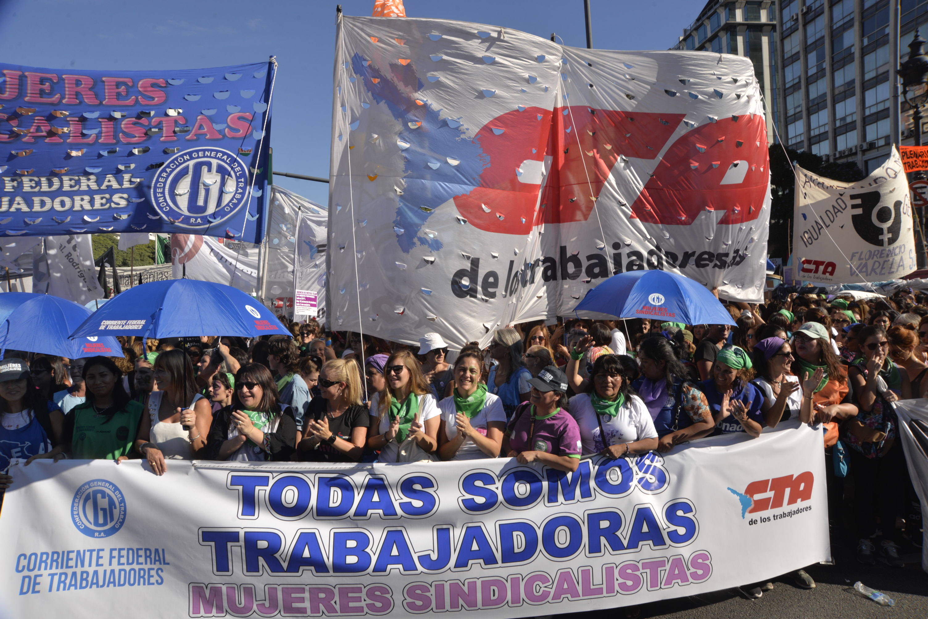 Por su parte, la Secretaria de Géneros de la CTA de lxs Trabajadorxs, Estela Díaz, sostuvo: "Es muy emocionante esta movilización, desde enero venimos organizando en grandes asambleas en todo el país este Paro Internacional de la Mujer. Vivimos en las calles un movimiento feminista con una enorme potencia transformadora, con una lucha que crece y con un marcado sentido antineoliberal. Con las consignas 'No al ajuste y a los despidos' y el derecho al 'Aborto legal, seguro y gratuito', nuestro sindicalismo abraza la agenda feminista, con jóvenes que desbordan la organización y la estructura con su empuje".