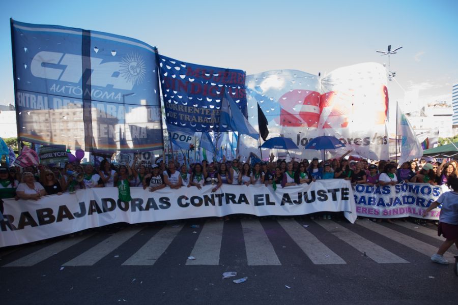 En todo el territorio argentino, denunciamos el brutal ajuste del Gobierno Nacional que perjudica la vida de las mujeres y sus familias. Desde las escuelas y las plazas, en una unidad histórica con todas las centrales sindicales y las organizaciones sociales, luchamos por una Patria justa, inclusiva y emancipada, además de la defensa de las trabajadoras despedidas exigiendo la resolución de los conflictos laborales además de paritarias libres y salarios dignos.
