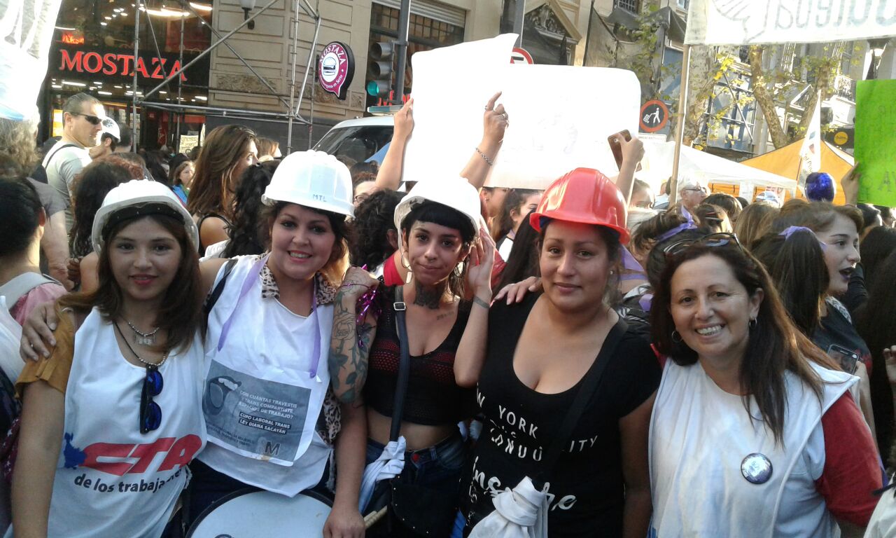 Caminando codo a codo, haciendo que la tierra tiemble, nos alzamos en un sólo grito: ¡TODAS SOMOS TRABAJADORAS!