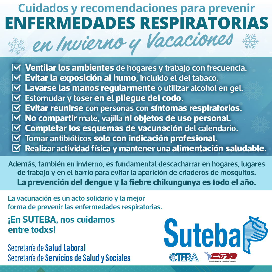Evitar especialmente el contacto personal con personas vulnerables (inmunocomprometidas o con factores de riesgo para enfermedad grave por infección respiratoria) durante al menos 5 días desde el inicio de los síntomas y, luego, extremar cuidados hasta el día décimo (usar barbijo, ventilar los ambientes, lavarse las manos).