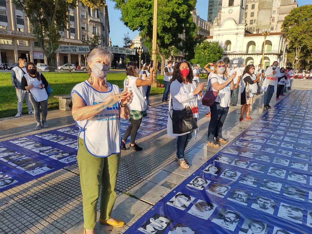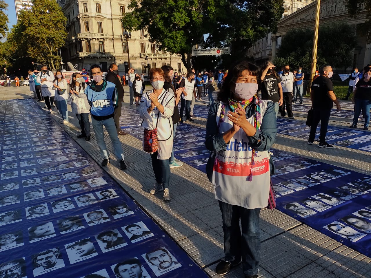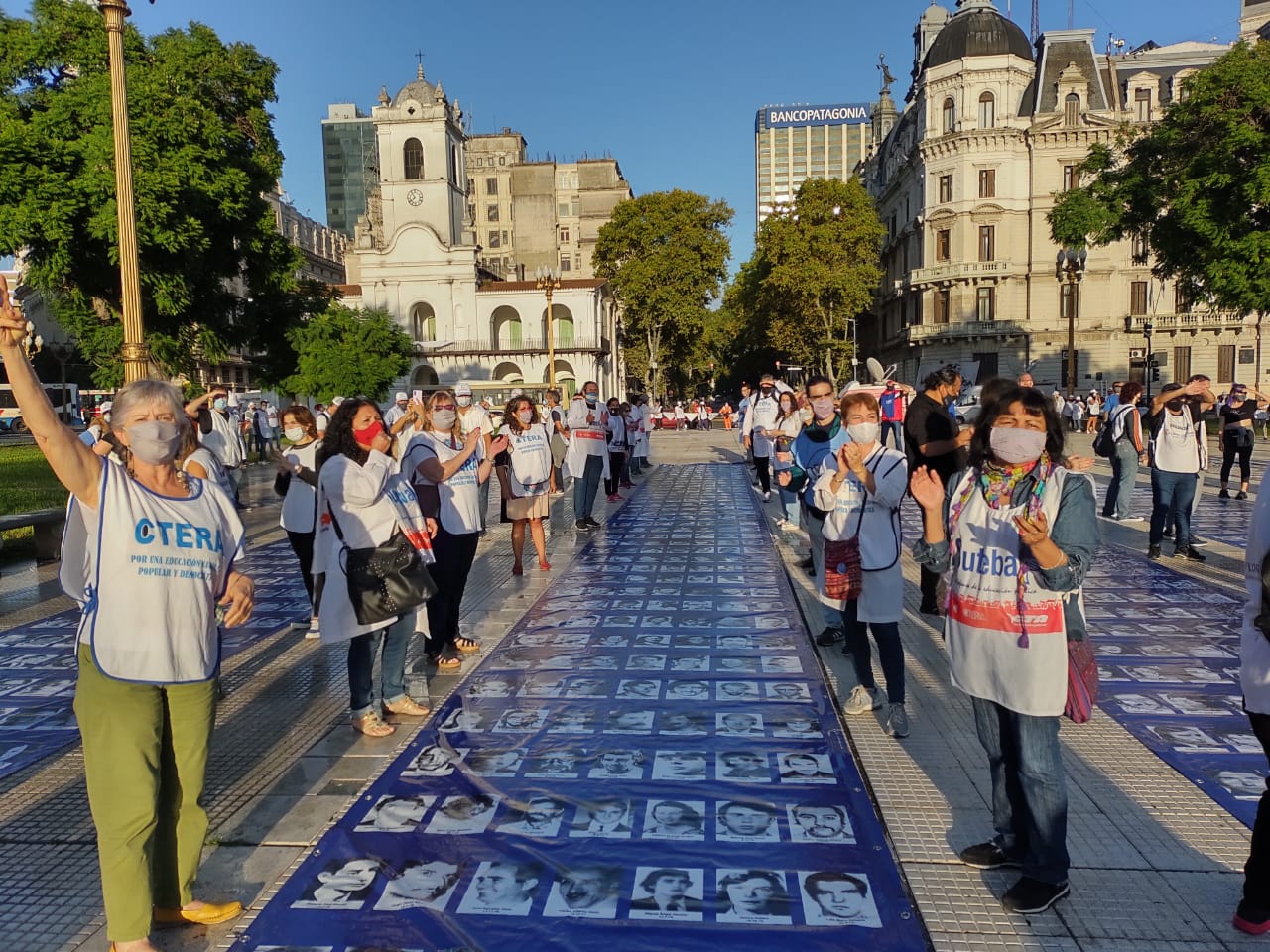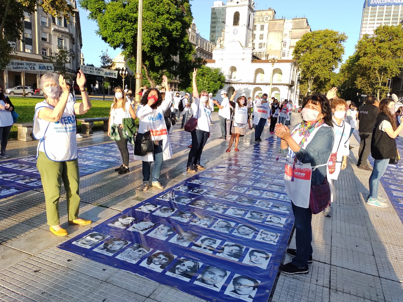 El encuentro, organizado por el Grupo de Apoyo a Madres de Plaza de Mayo Línea Fundadora, que agradeció especialmente la presencia de nuestro Sindicato, se realizó en la Plaza de Mayo, con la intervención de los tradicionales paños con los rostros de lxs compañerxs detenidxs desaparecidxs, presentes en cada marcha del 24 de marzo.