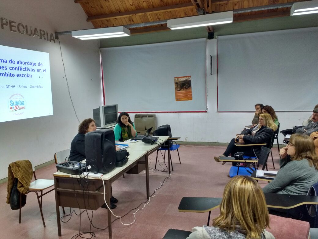 El martes 26 de septiembre, en la Escuela Agropecuaria de Las Flores, se desarrolló la Jornada sobre Abordaje de Situaciones Conflictivas en el ámbito escolar con la participación de Sandra Alegre y Mónica Grandoli, referentes de SUTEBA Provincia.