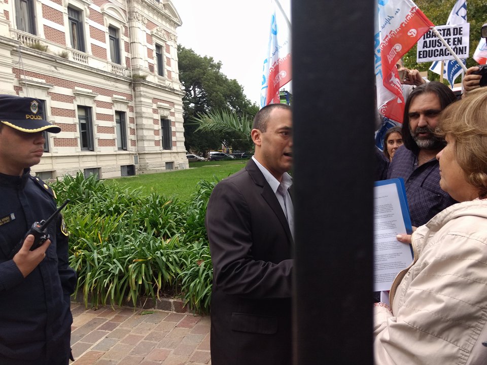 El Secretario General del SUTEBA, Roberto Baradel, expresó al respecto: "Es una vergüenza que nos impidan entregar una nota en mesa de entradas como corresponde. En Democracia estas sedes deben estar abiertas para la petición del conjunto de lxs ciudadanxs. Una vez más, las autoridades desconocieron a lxs Docentes y sus reclamos. Necesitamos discutir la problemática integral que atañe la Educación Pública. Hoy quedó claro que el diálogo del que habla la Gobernadora es sólo una puesta en escena".