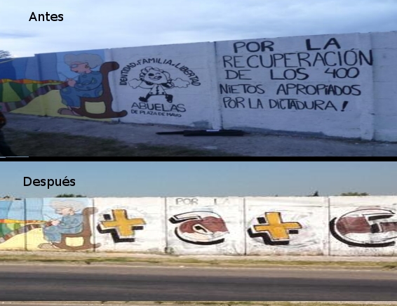 En el dia de ayer, en la localidad de Claypole, partido de Almirante Brown, fue tapado un mural de Abuelas de Plaza de Mayo por una pintada de Massa-Giustozzi. Repudiamos fuertemente este tipo de acciones que no son errores, sino que expresan una ideología que busca tapar la memoria que tanto nos costó que volviera a florecer.