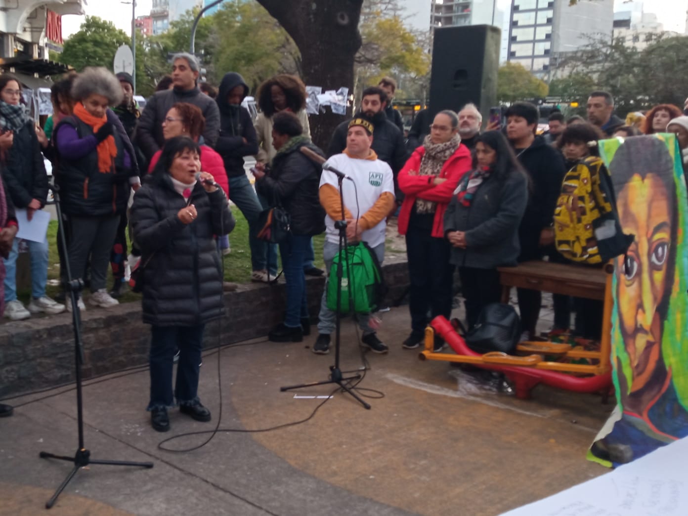 Nos concentramos junto a Organizaciones y representantes de la comunidad afroargentina y aliades en repudio al ataque a su monumento. Dicha estatua fue quemada en su totalidad en la madrugada del viernes y había sido inaugurada el 8 de noviembre de 2022, fecha en que se celebra el Día Nacional de las y los afroargentinos y de la cultura afro. El ataque se enmarca en un contexto de crecientes discursos de odio.