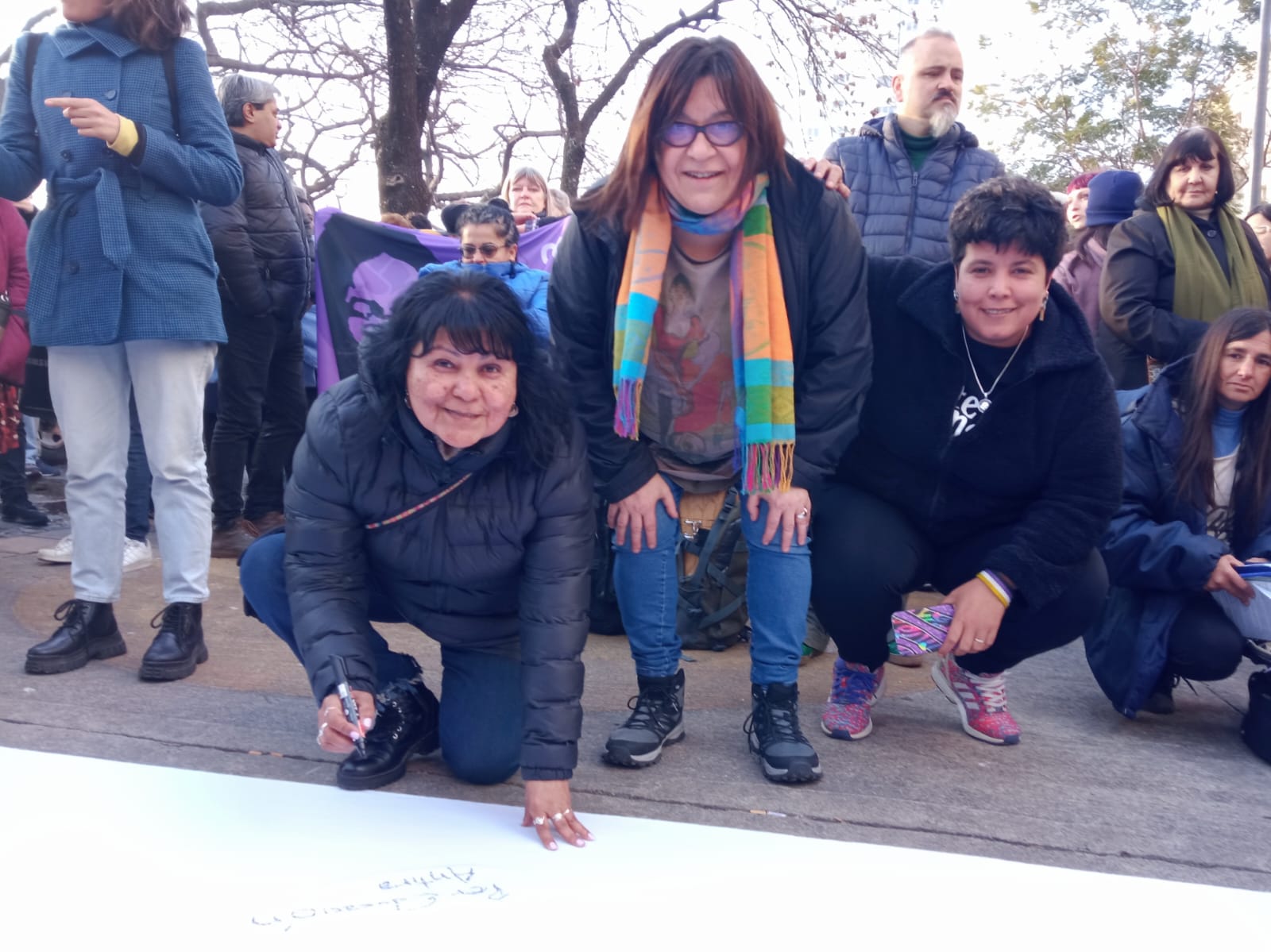 Silvia Almazán, Secretaria General Adjunta; Cristina Echegoyen y Amanda González, Secretaria y Subsecretarie de Igualdad de Géneros y Diversidades del SUTEBA, participaron representando a nuestro Sindicato, junto a otres referentes de las Organizaciones que nos nuclean.
