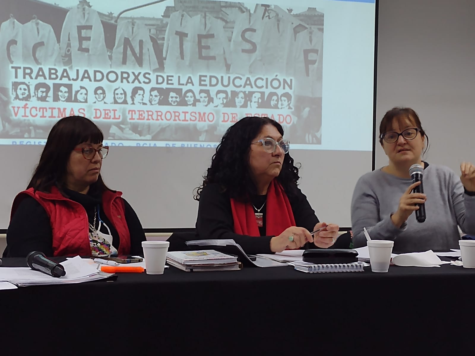 Bajo la advocación de los 30.000 compañerxs detenidxs desaparecidxs, comenzó el encuentro con un cálido saludo de Roberto Baradel, Secretario General del SUTEBA, señalando que había fallecido ese día el genocida Etchecolatz en cárcel común, que el hecho de tener genocidas en esas condiciones lo debemos a las Madres y Abuelas y al movimiento de DDHH. Asimismo, resaltó todo el trabajo y los aportes que hace históricamente nuestra Organización Sindical por más Memoria, Verdad y Justicia; exigiendo siempre cárcel común y efectiva para los genocidas.