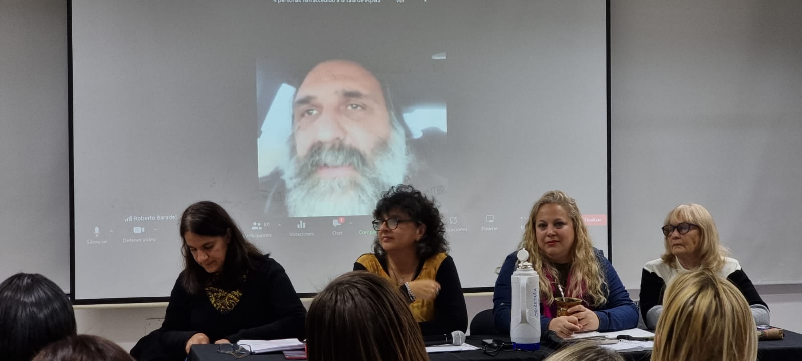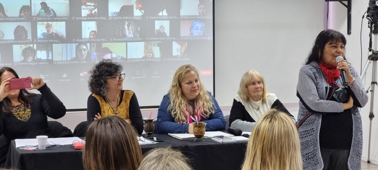 La Secretaria y las Subsecretarias de Salud Laboral, Marisa Barromeres, Mariela Preuss y Alba Werenchuk, abrieron el encuentro dando la bienvenida particularmente a quienes se integraron a las Secretarías de Salud Laboral territoriales a partir de la reciente elección y señalando que "la defensa de las CyMAT, de la Escuela Pública y de la Salud de lxs Trabajadorxs de la Educación constituyen un eje central en las políticas de la Secretaría y son fundacionales de nuestra Organización Sindical."