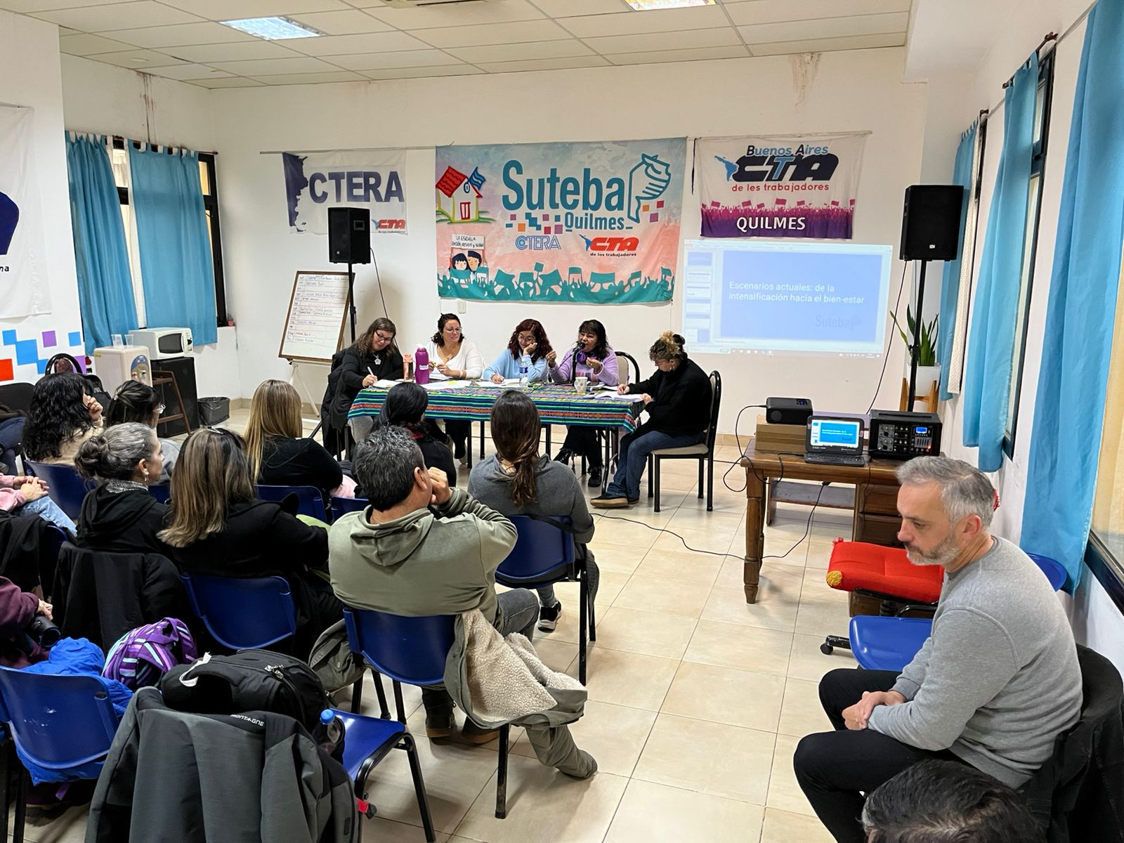 En cada encuentro a lo largo del territorio bonaerense, debatimos cuestiones como la sobrecarga laboral, el derecho a la desconexión y la adecuación de la planta orgánica funcional, priorizando la tarea pedagógica, entre otros aspectos que contribuyen al mejoramiento de las condiciones laborales.