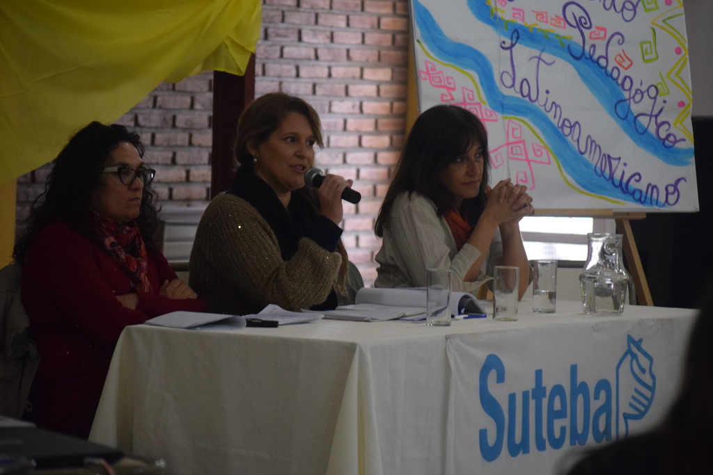A continuación, Ferrario presentó a la mesa que expuso frente a los compañeros y estuvo integrada por Rosana Merlos, Secretaría de DDHH SUTEBA Central, y por María Isabel Ortega, Prosecretaria de Educación y miembro de la Junta Ejecutiva de CTERA.