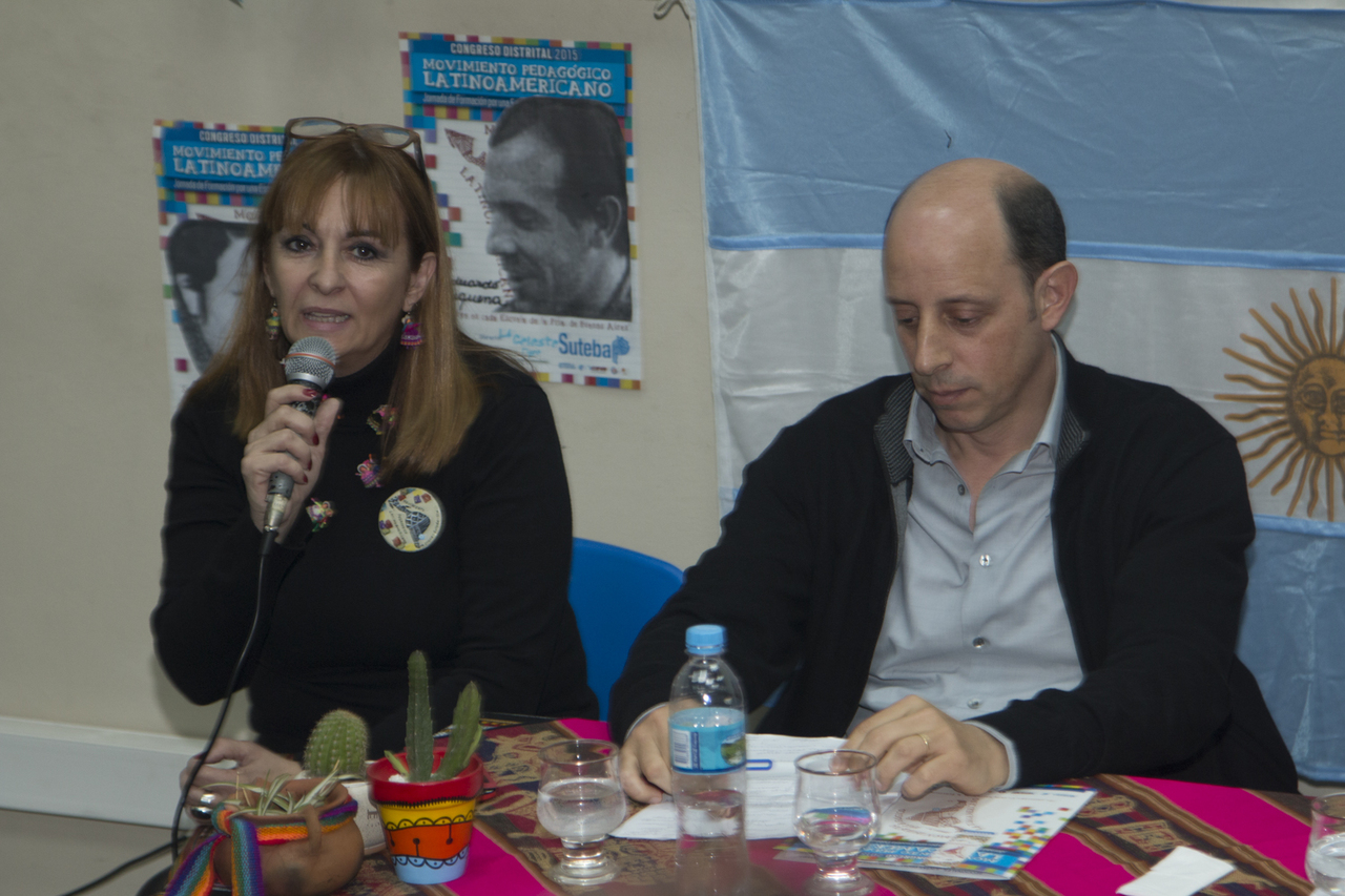 Posteriormente, Laura Santillán, pedagoga e investigadora de la UBA, y Adrián Cannellotto, rector de la Universidad Pedagógica (UNIPE), formaron un panel en el que disertaron sobre los lineamientos pedagógicos del MPL e hicieron hincapié en la Educación Emancipadora.