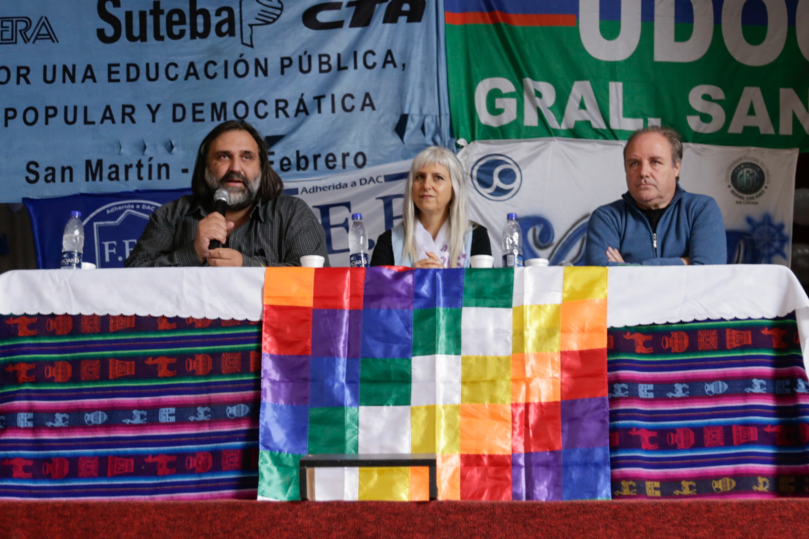 En el panel expusieron lxs Secretarixs Generales de las Organizaciones Sindicales. El Secretario General del SUTEBA, Roberto Baradel, manifestó: "Lxs Docentes estamos de pie y con dignidad dando la pelea por una Educación Pública para todxs, en unidad con el FUDB. El debate que estamos dando va a dar las bases para discutir lo que se viene en Argentina, para construir una Educación Pública de calidad y para que el Gobierno garantice los derechos de Estudiantes y Trabajadorxs de la Educación".