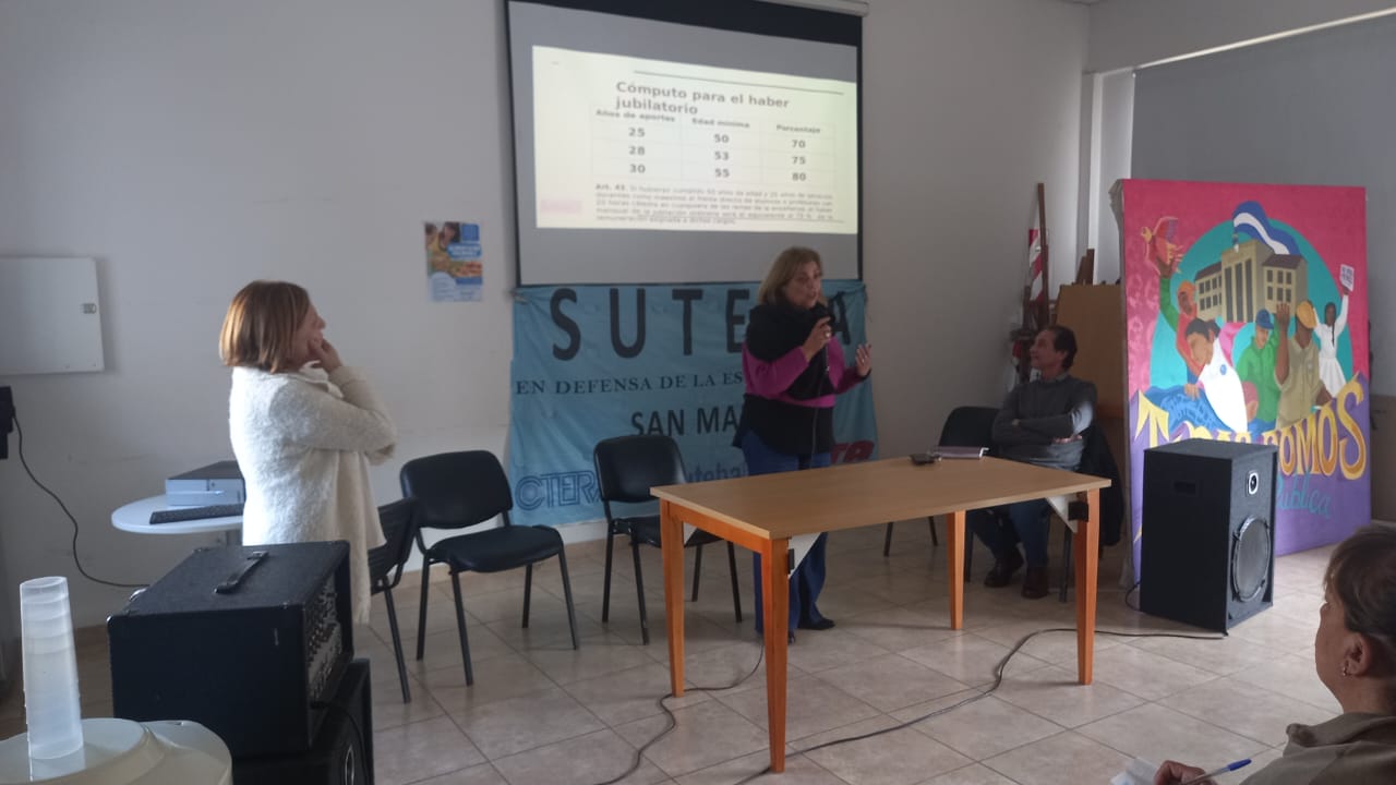 El lunes 25 de septiembre se llevó a cabo un encuentro en el SUTEBA San Martín, a cargo de la Secretaria de Jubilaciones distrital, Adriana Tuchi, y de la Secretaria General, Verónica Luzariaga.