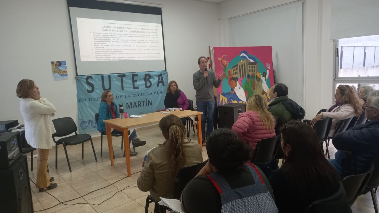 El lunes 25 de septiembre se llevó a cabo un encuentro en el SUTEBA San Martín, a cargo de la Secretaria de Jubilaciones distrital, Adriana Tuchi, y de la Secretaria General, Verónica Luzariaga.