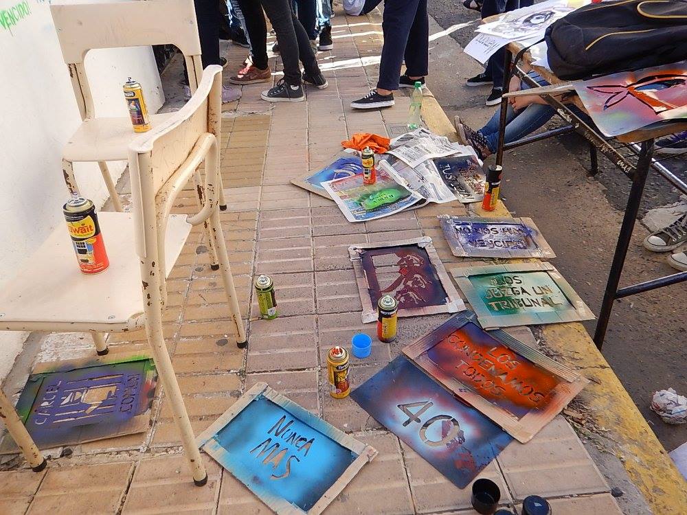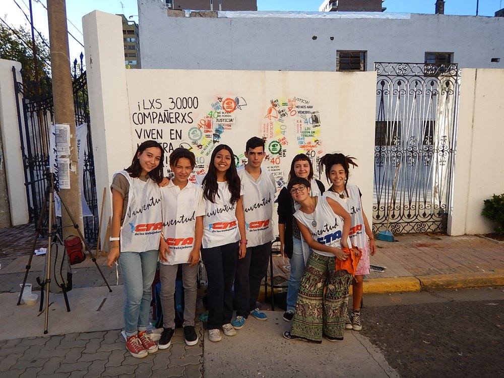 La Juventud de la CTA San Nicolás-Ramallo, junto con la EES Nº 9, realizaron un mural en el exterior de la escuela para conmemorar los 40 años del golpe genocida. Acompañados por SUTEBA, autoridades y docentes de la escuela, e integrantes de la Mesa de la Memoria por la Verdad y la Justicia, la Juventud de CTA de los Trabajadores y estudiantes del Colegio Nacional hicieron un homenaje a los 30.000 compañeros detenidos-desaparecidos y plasmaron en un mural su sentir y firme convicción: Dictadura nunca más, democracia nunca menos.