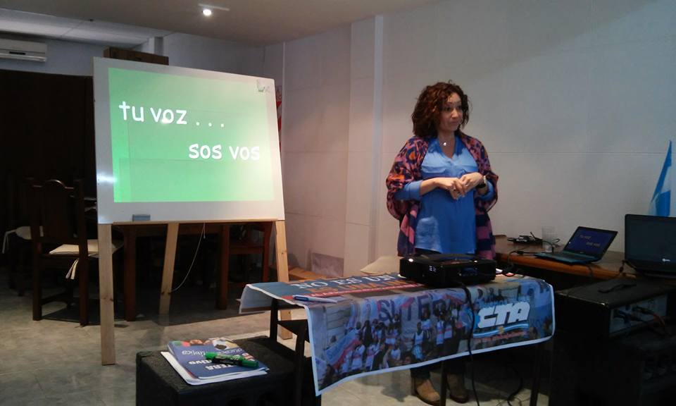 Para finalizar una jornada enriquecedora, los compañeros contaron con la grata presencia de la fonoaudióloga Viviana García en el marco del Taller "Tu voz sos vos", quien de una manera muy didáctica se encargó de explicar pautas para el cuidado de la voz, a través del uso de material audiovisual y de ejercicios acordes, siempre haciendo hincapié en la prevención y en la salud de todos los Trabajadores de la Educación.