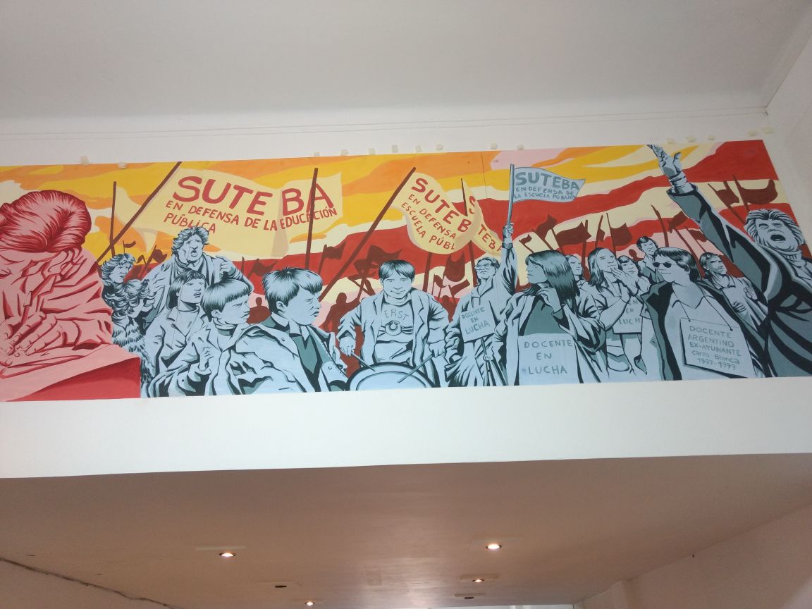 Para finalizar la jornada, en el salón principal de nuestra sede se descubrió un mural en conmemoración de todos los años de lucha de nuestra organización. El mismo fue realizado por Luciano Guardia y Alicia Suárez, con la ayuda de Delegadxs. La Secretaria General del distrito, Nancy Monti, se refirió a los años de lucha referenciando que somos la HISTORIA, la LUCHA y fundamentalmente la ESPERANZA para lograr el anhelo de un mundo mejor.