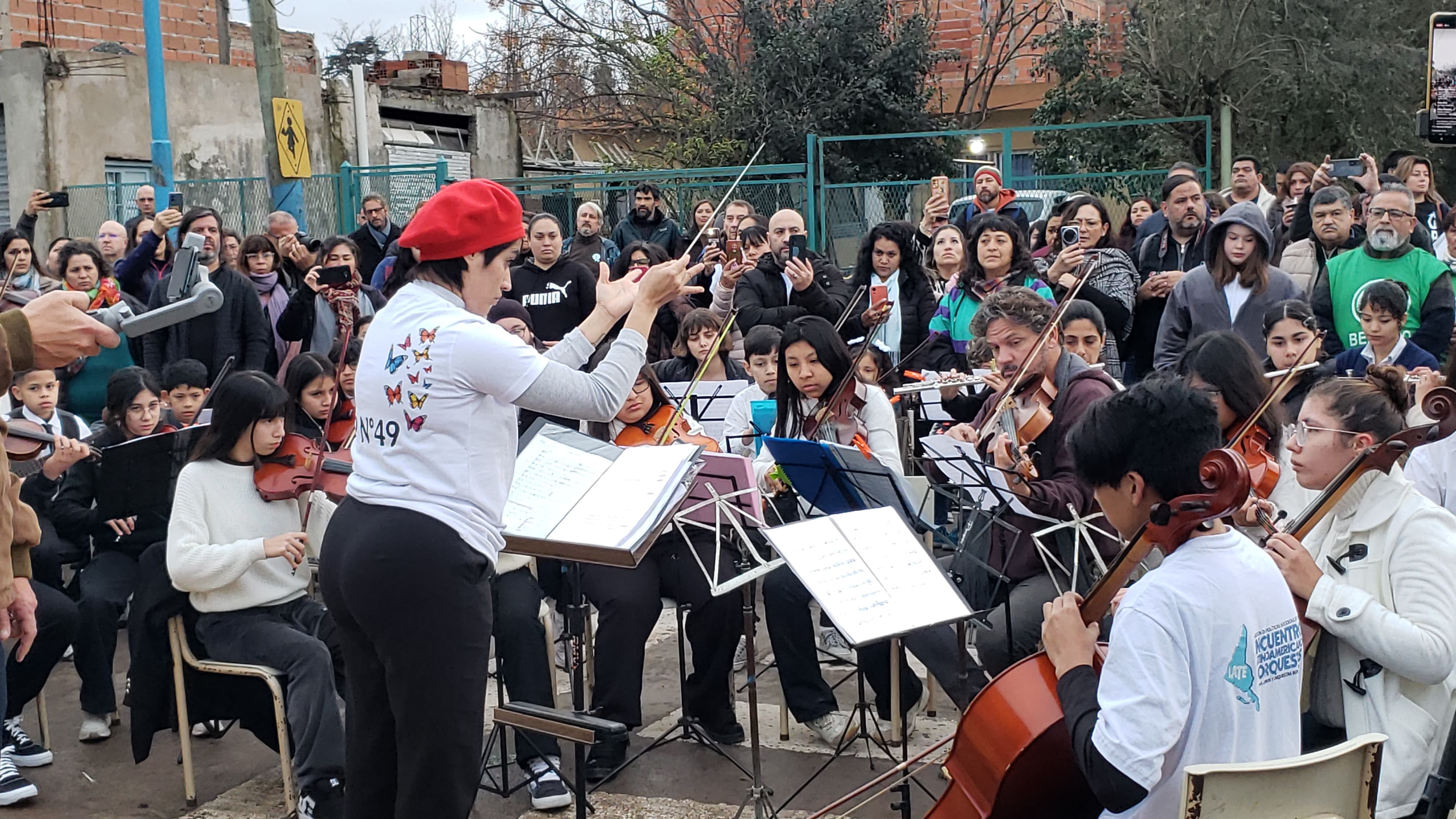 La orquesta de Estudiantes, por la que tanto luchó Sandra, tocó el himno y acompañó con música el descubrimiento de unas placas en la entrada del establecimiento, que fueron bendecidas por el Padre Paco Olveira.