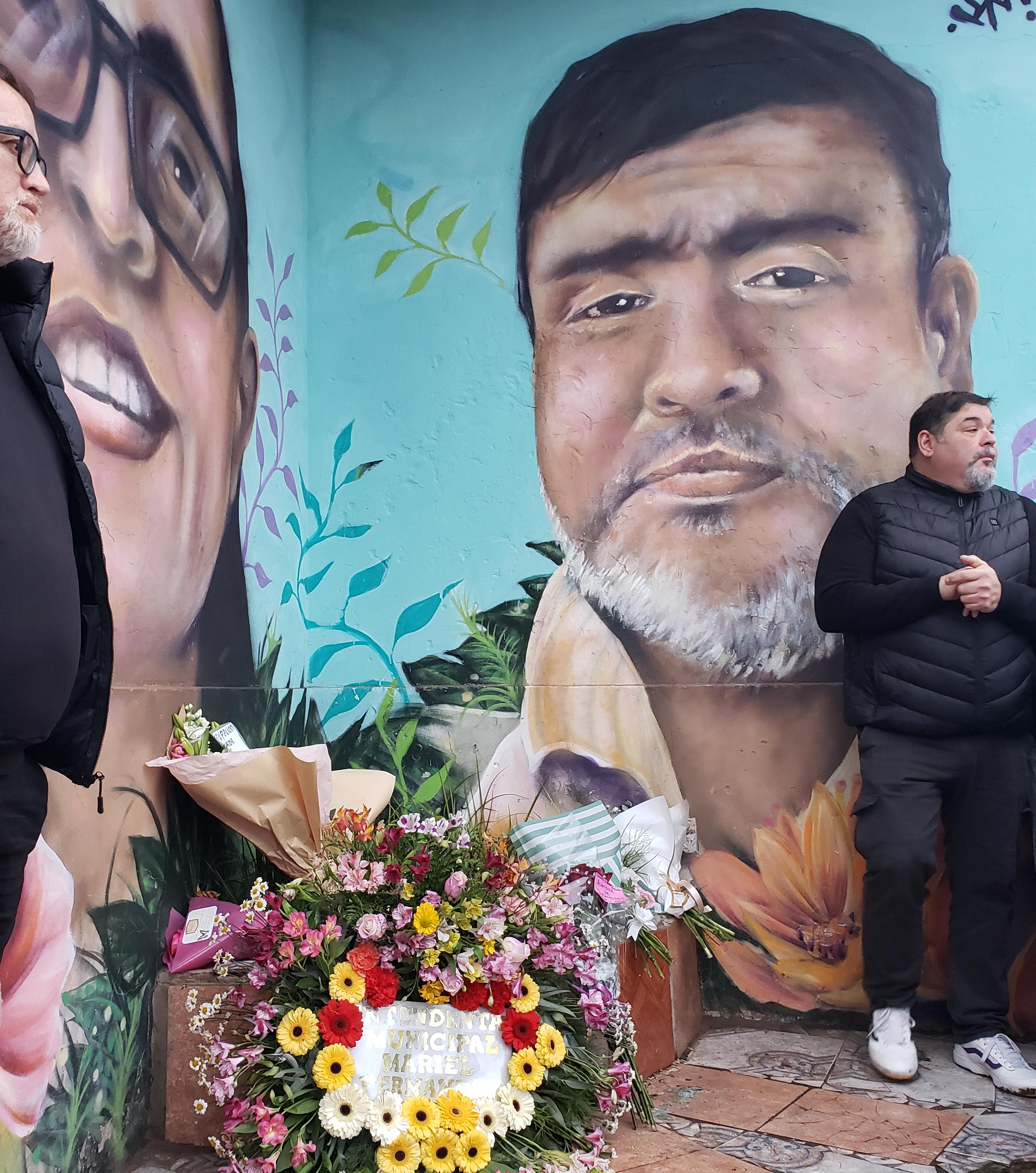 Allí, se realizó un acto que comenzó con una sirena 8.06 hs y en el que tomó la palabra Mabel Zurita, esposa de Rubén. Luego, se realizaron ofrendas florales al pie del mural que recuerda a nuestrxs compañerxs.