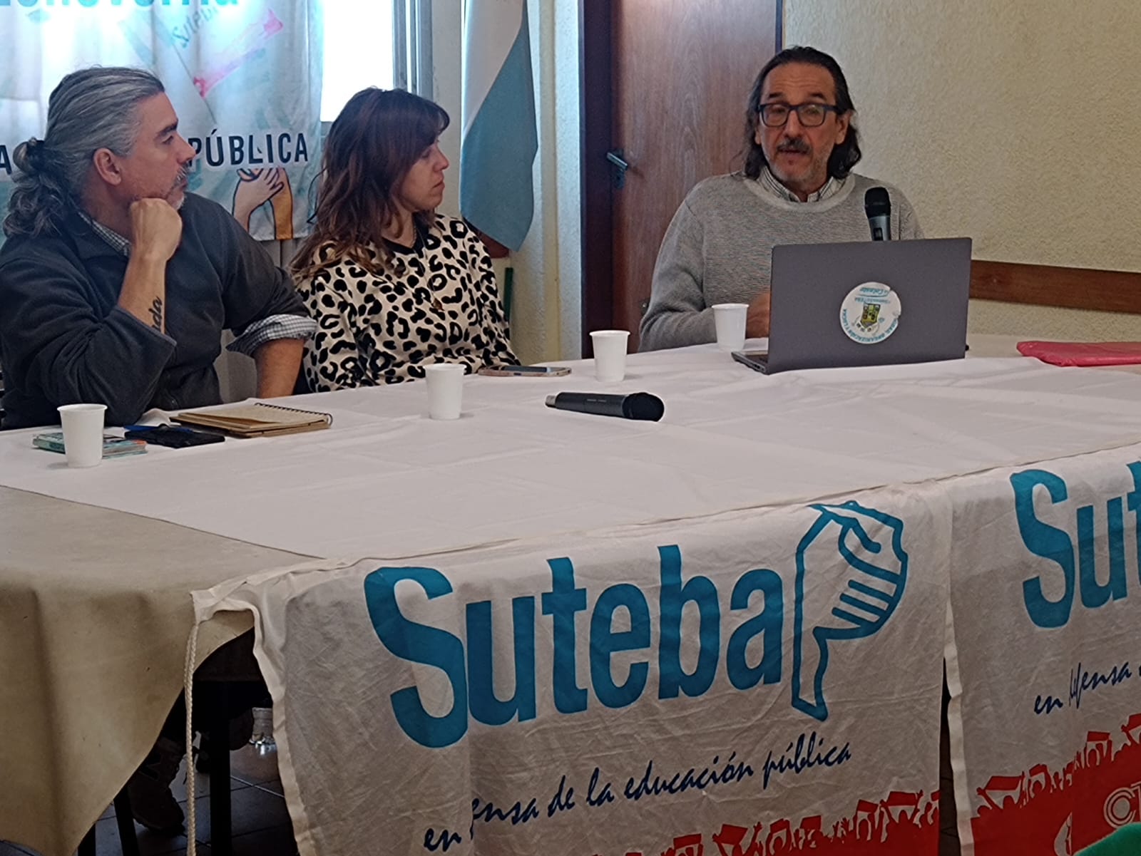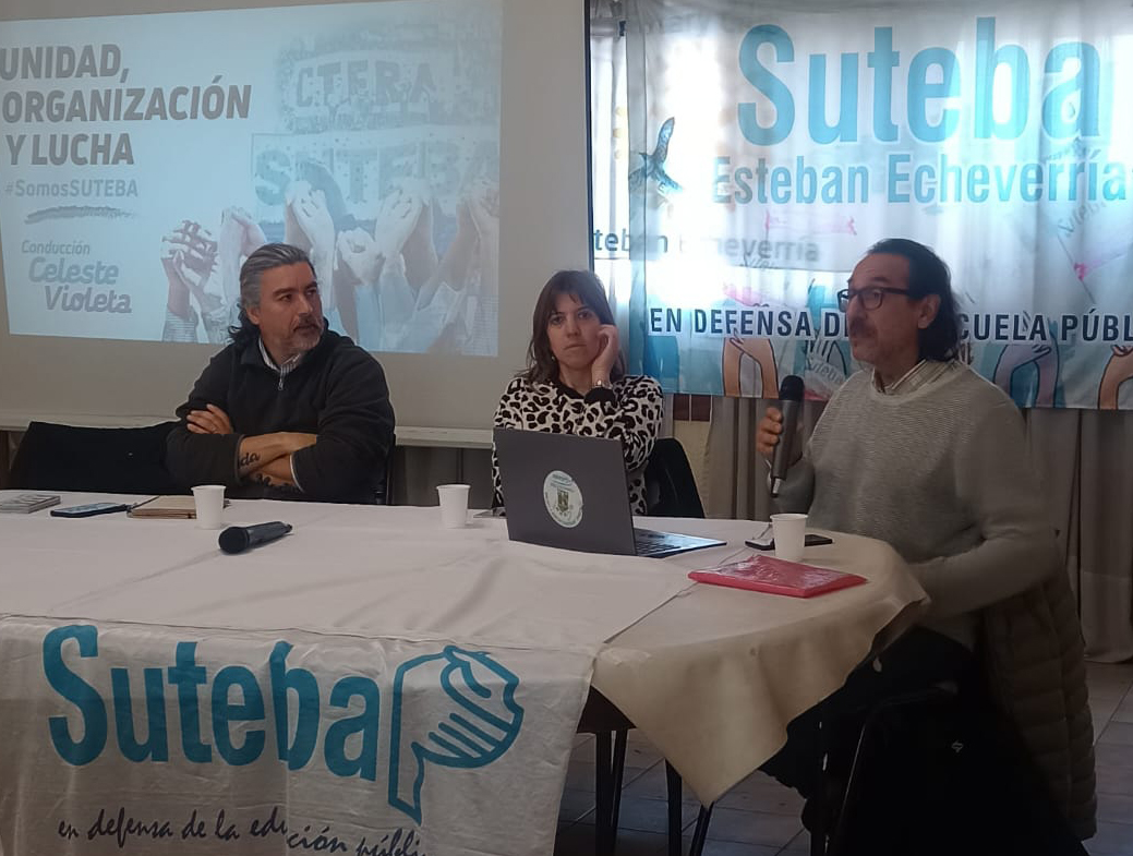En un segundo momento, la mesa contó con la presentación de Marina Boeri, Secretaria de Políticas Culturales y Ambientales del SUTEBA Esteban Echeverría, y la disertación de Gabriel Álvarez, Geógrafo, Docente Universitario e Investigador; que abordó las temáticas específicas de la clase, aportando perspectivas para el trabajo áulico de los conflictos ambientales.