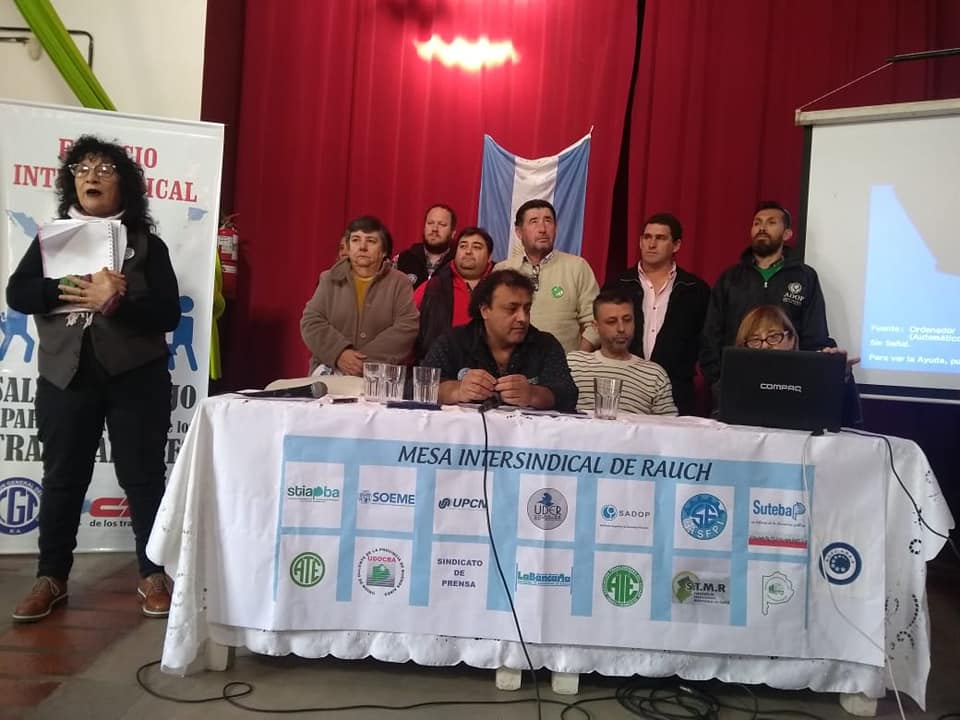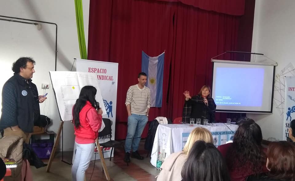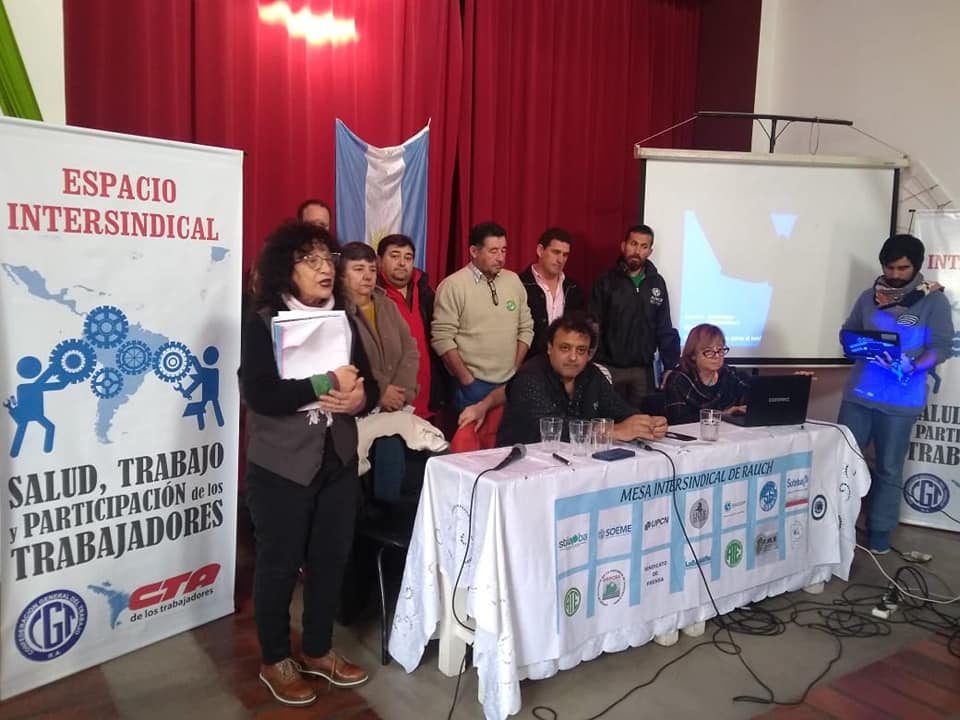 El viernes 19 de julio, la fuerza y organización de la Mesa Intersindical de Rauch convocó a 80 Trabajadorxs en el marco de la jornada "Salud, Trabajo y Participación de lxs Trabajadorxs". Dicho encuentro estuvo a cargo de Lilian Capone, Secretaria de Salud Laboral de la CTA Provincia de Buenos Aires; Pablo Borneo, Delegado de CyMAT Aeronáuticos, y Alejandro Villegas, Asesor de Higiene y Seguridad de la Federación Gráfica Bonaerense.