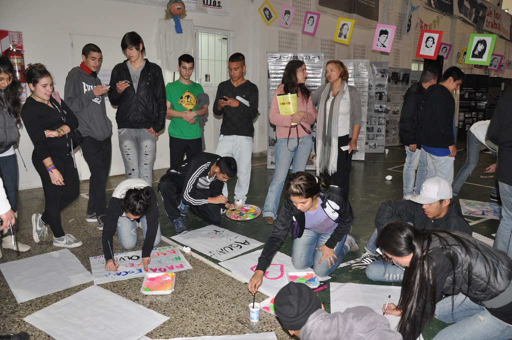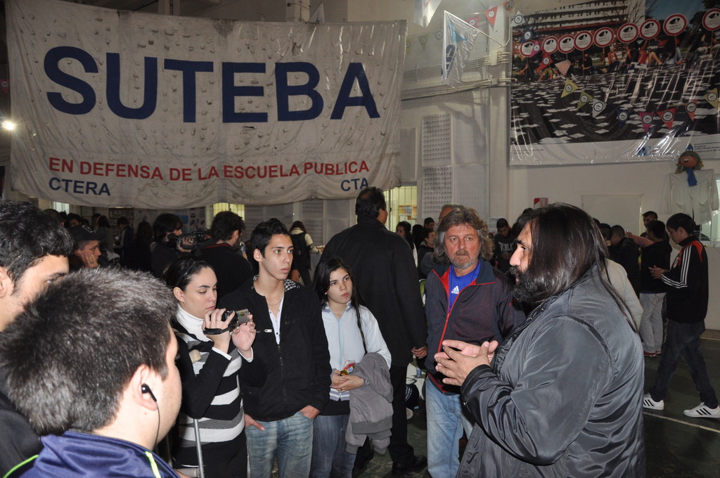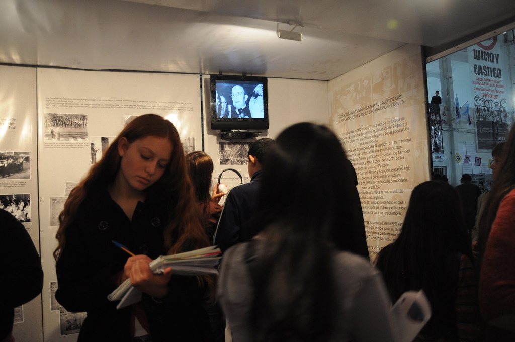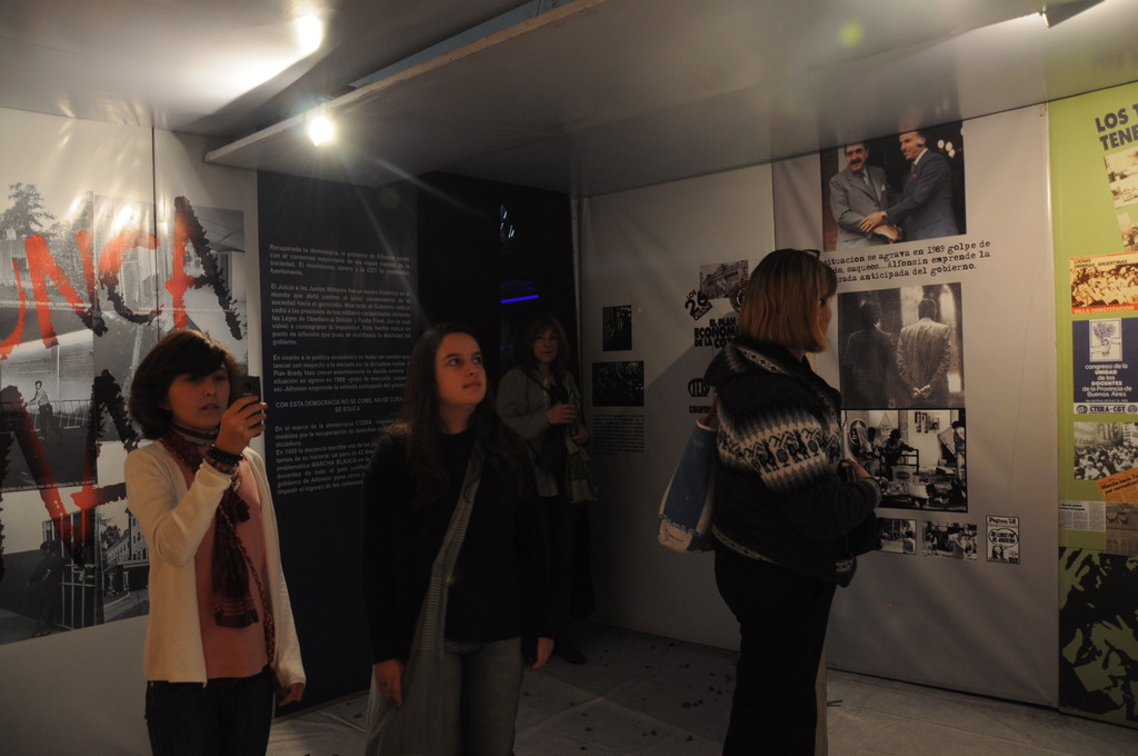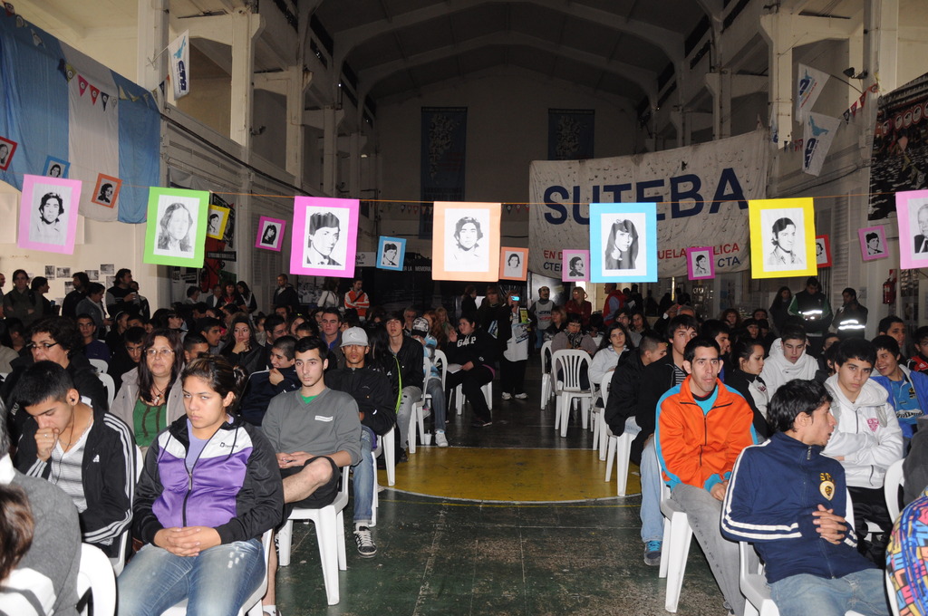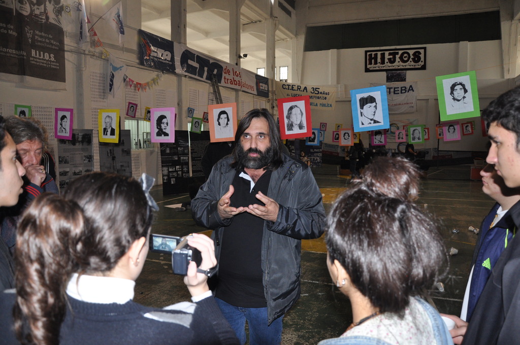 Los chicos recorrieron la Muestra, para luego, escuchar a los panelistas que brindaron unas palabras, entre ellos se encontraban Roberto Baradel, Secretario General de CTA Buenos Aires y SUTEBA; Rosana Merlos, Secretaria de Derechos Humanos de SUTEBA; Paulino Guarido, Secretario General SUTEBA La Matanza; Carlos Pisoni y Enrique Pastor de H.I.J.O.S; y Manuel Gonçalvez, nieto recuperado y flamante Revisor de Cuentas de Abuelas de Plaza de Mayo. Antes de que hablaran los oradores, se le agradeció a Marina Mapelli, Secretaria General de SUTEBA Vicente López y Coordinadora de la Muesta, por haber sido una parte fundamental en la organización de dicho evento.
