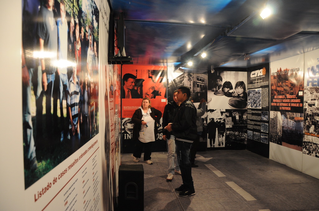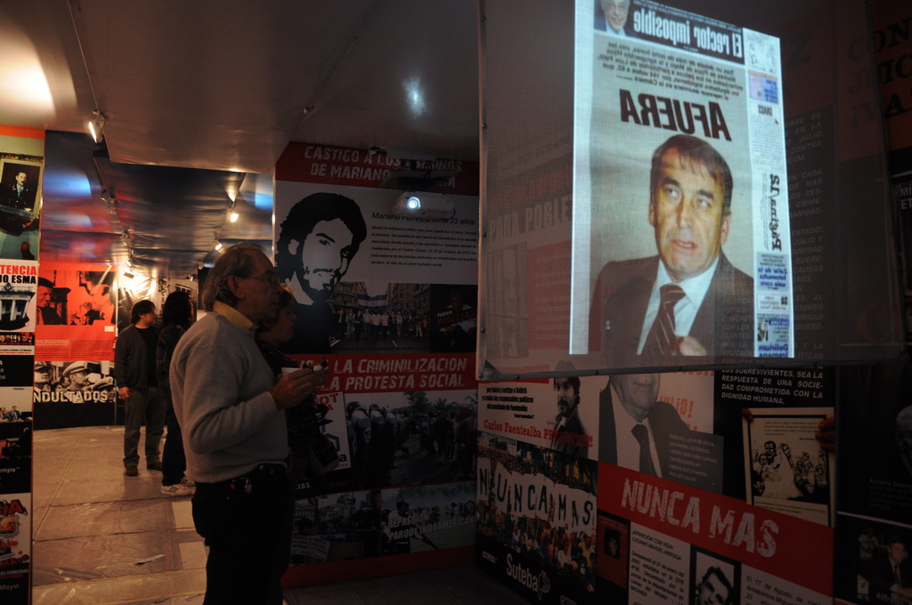 En sintonía, la Sub Secretaria de Derechos Humanos del SUTEBA, Patricia Romero Díaz, dijo: “Para nosotros fue muy fuerte cuando esta Muestra recorrió toda la provincia de Buenos Aires, porque en cada escuela y en cada lugar nos encontrábamos con el testimonio de una alumna, de una profesora o de una madre que por primera vez podía hablar de lo que le había ocurrido a su familia o en su pueblo o en su ciudad durante la última dictadura. Entonces que hoy podamos reabrir esta muestra, que hace un línea histórica de la lucha de los trabajadores en nuestro país desde el '54 hasta la actualidad, en un lugar como éste (Ex ESMA) que fue un lugar de oscuridad y de terror, nos pone muy contentos, ya que le podemos transmitir a nuestros chicos en cada escuela que es necesario que todos los que fueron participes directos o cómplices de la dictadura genocida del '76 deben ser encarcelados”.