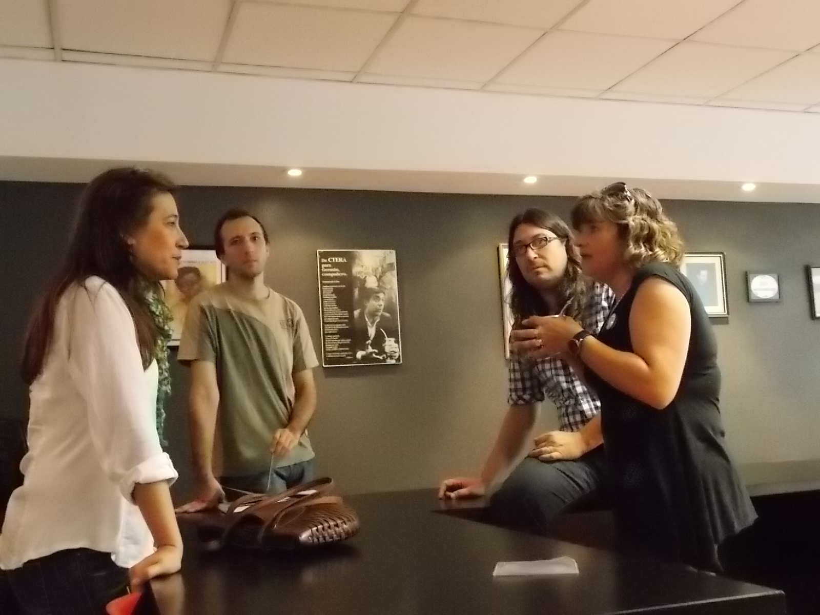 El sábado 9 de noviembre, en el marco de la Formación Sindical de Delegados de UTE para el taller de Derechos Humanos y Soberanía, se presentó el libro "Yo fui a los juicios con mi profe". Rosana Merlos, Secretaria Provincial de Derechos Humanos del SUTEBA fue la encargada de compartir este trabajo con los delegados de las escuelas de distintas áreas.