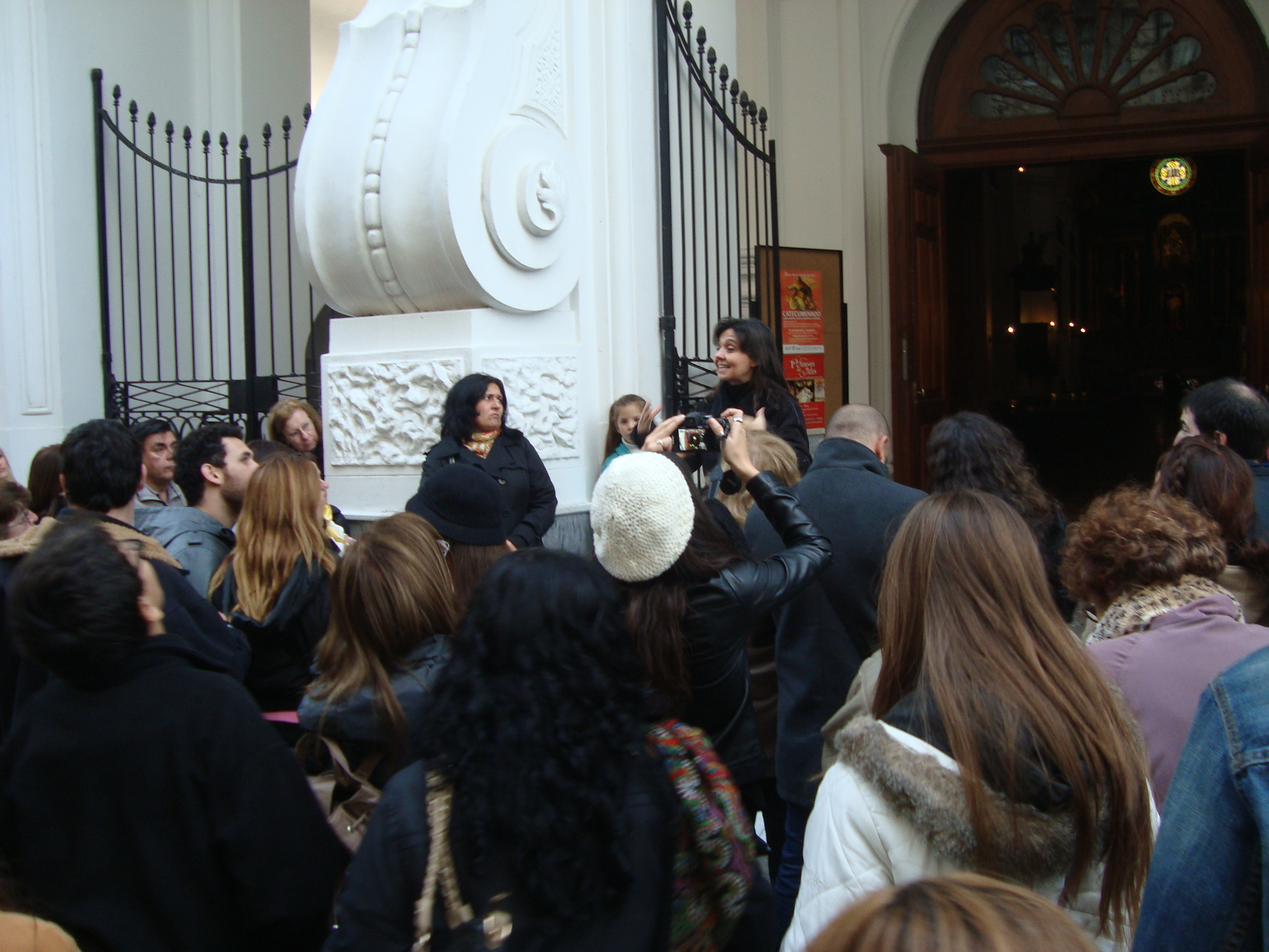 Por la tarde, el recorrido atravesó la Avenida de Mayo para conocer los edificios más importantes y bellos de la avenida. Una vez finalizado el tramo, la próxima parada fue la Manzana de las Luces, una misteriosa y atractiva red de túneles que fueron construidos entre los siglos XVII y XVIII, y que atrapó a todos los presentes hasta el final del recorrido.