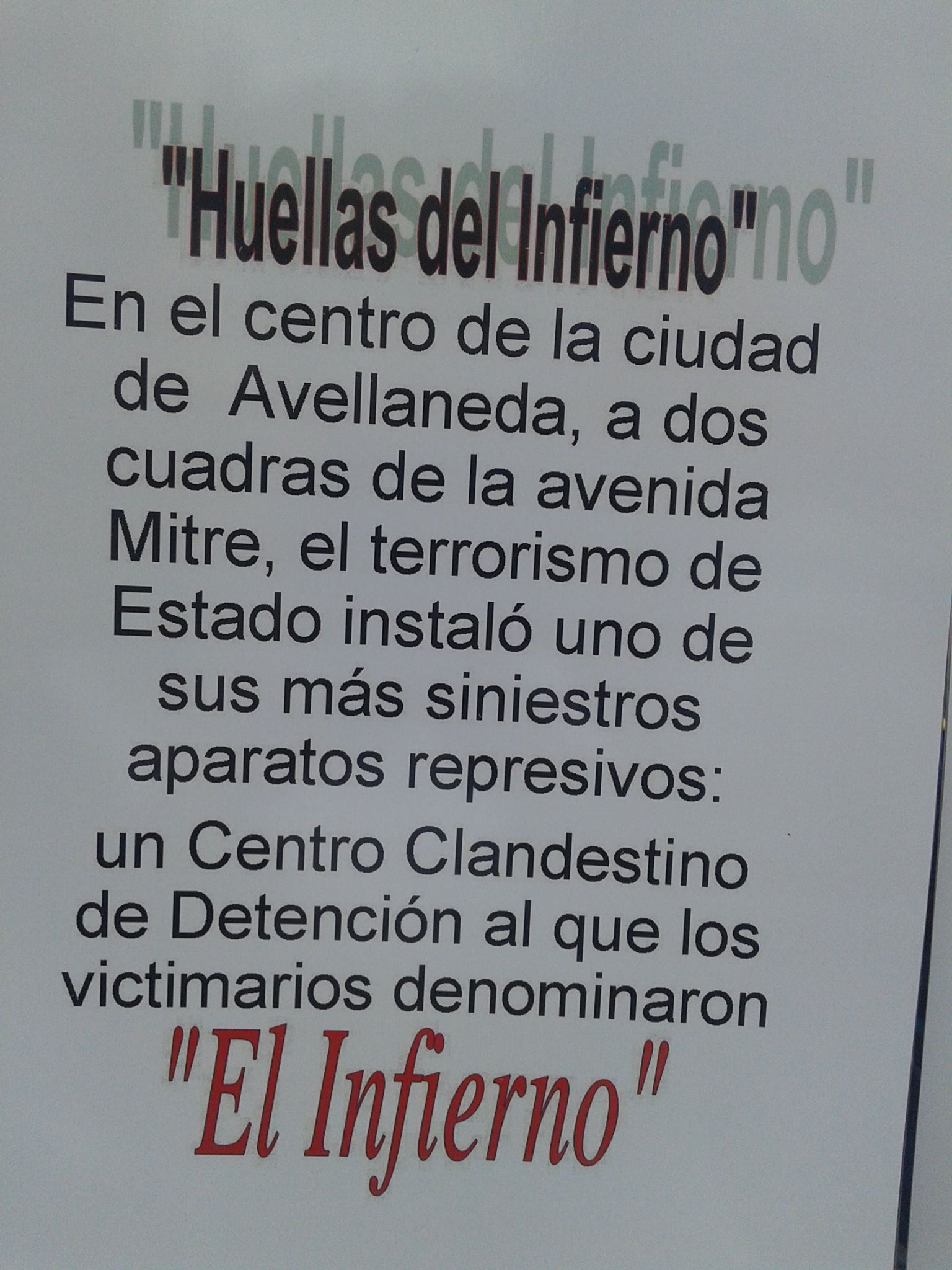 La identidad del pueblo de Avellaneda que se nutre de Azucena Villaflor, de las luchas de la resistencia, del paso de la Marcha Blanca y de la triste celebridad del Puente Pueyrredón no puede negar la existencia del ex CCD El infierno en el que centenares de compañerxs sufrieron la tortura, en su mayoria militantes y delegados gremiales.