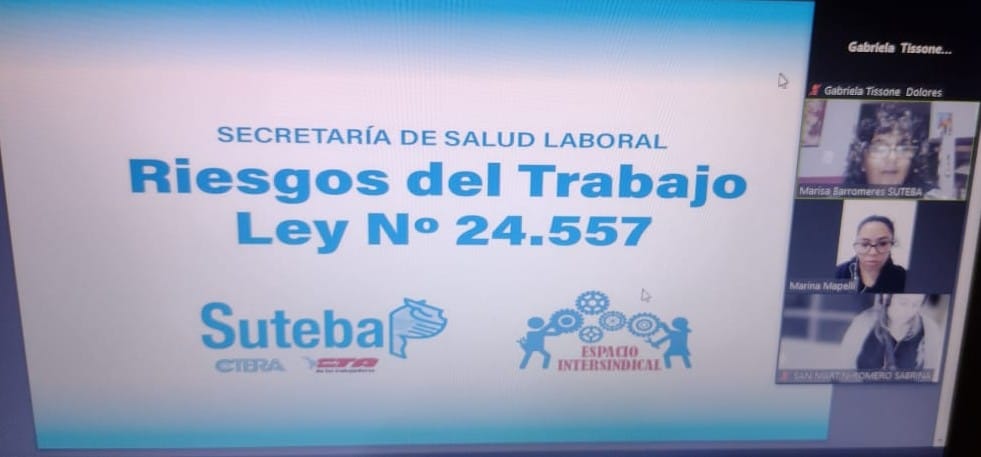 La Secretaría de Salud Laboral del SUTEBA llevó adelante una Jornada de Formación en la Ley de Riesgos de Trabajo Nº 24.557 (ART) en la que participaron alrededor de 100 compañerxs Secretarixs de los diferentes distritos y referentes de los Comités Mixtos Distritales.