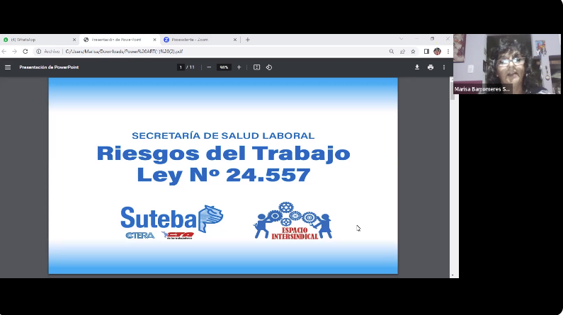 Fue un encuentro de análisis y profundización, en el que se reforzó la necesidad de promover la prevención y la promoción de la Salud de lxs Trabajadorxs de la Educación en cada ámbito laboral y de la articulación con los espacios mixtos de participación para minimizar y/o eliminar los factores de riesgos que condicionan el trabajo docente.