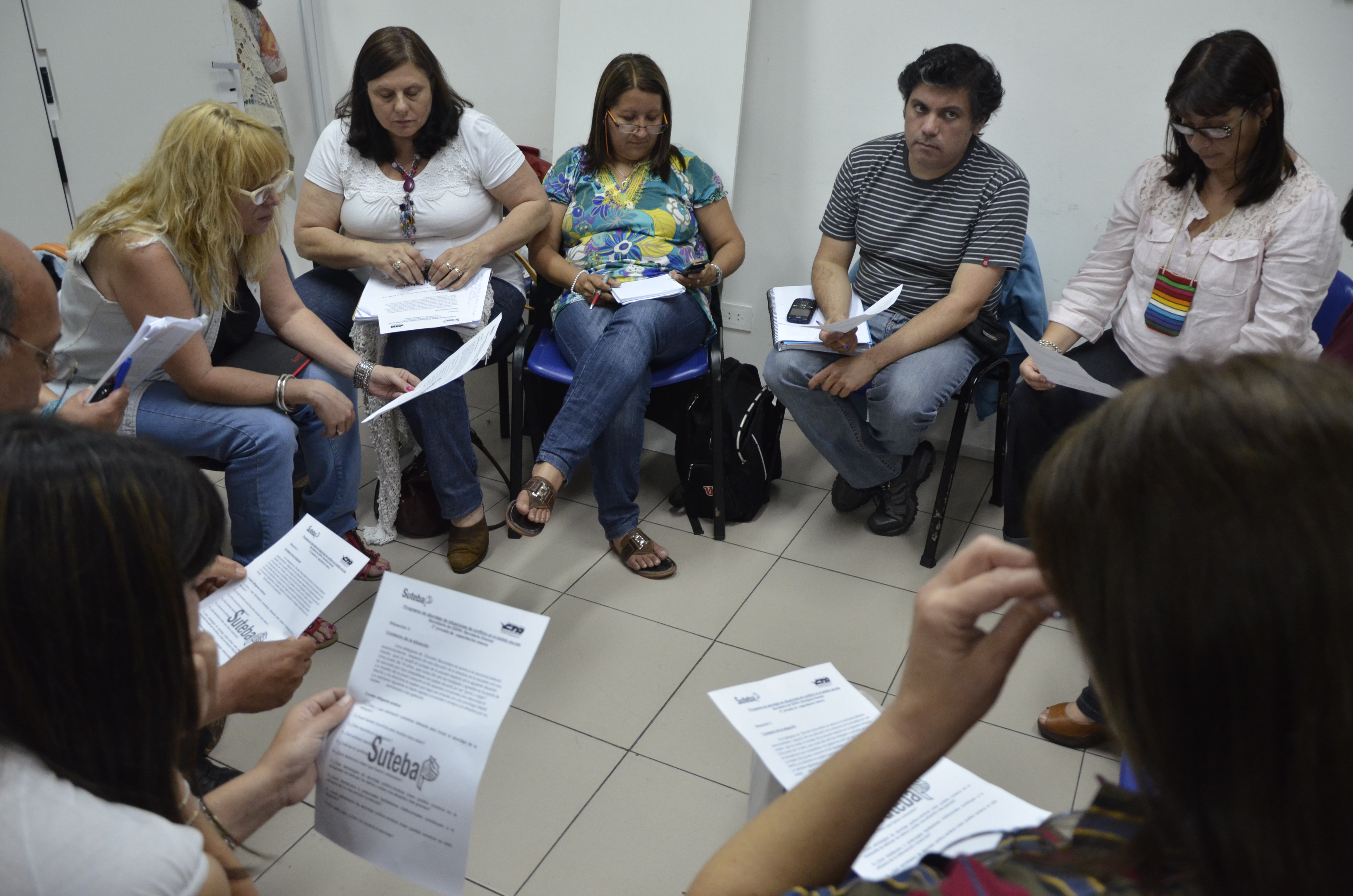 Antes de dar inicio al trabajo en comisiones, el Secretario General del SUTEBA, Roberto Baradel, y la Secretaria Adjunta, Cecilia Martínez, destacaron el trabajo realizado por el SUTEBA desde ambas secretarías para abordar estas problemáticas y alentaron a continuar profundizando esta política de conformación de Equipos de Intervención en los los Distritos de la Provincia de Buenos Aires.