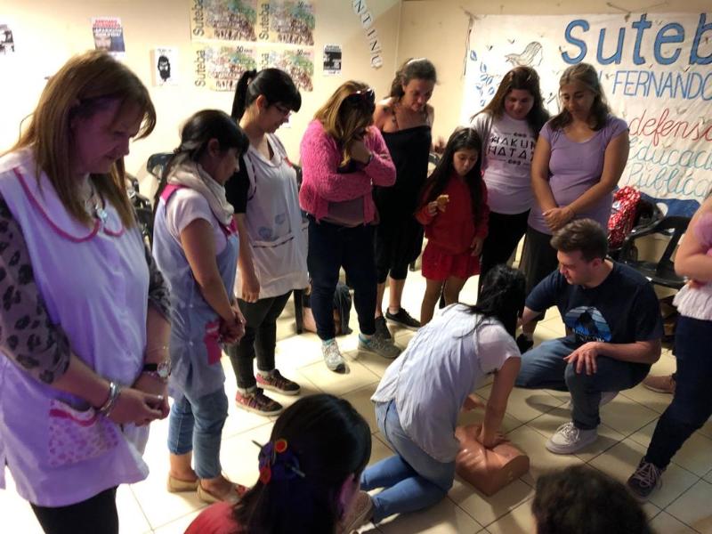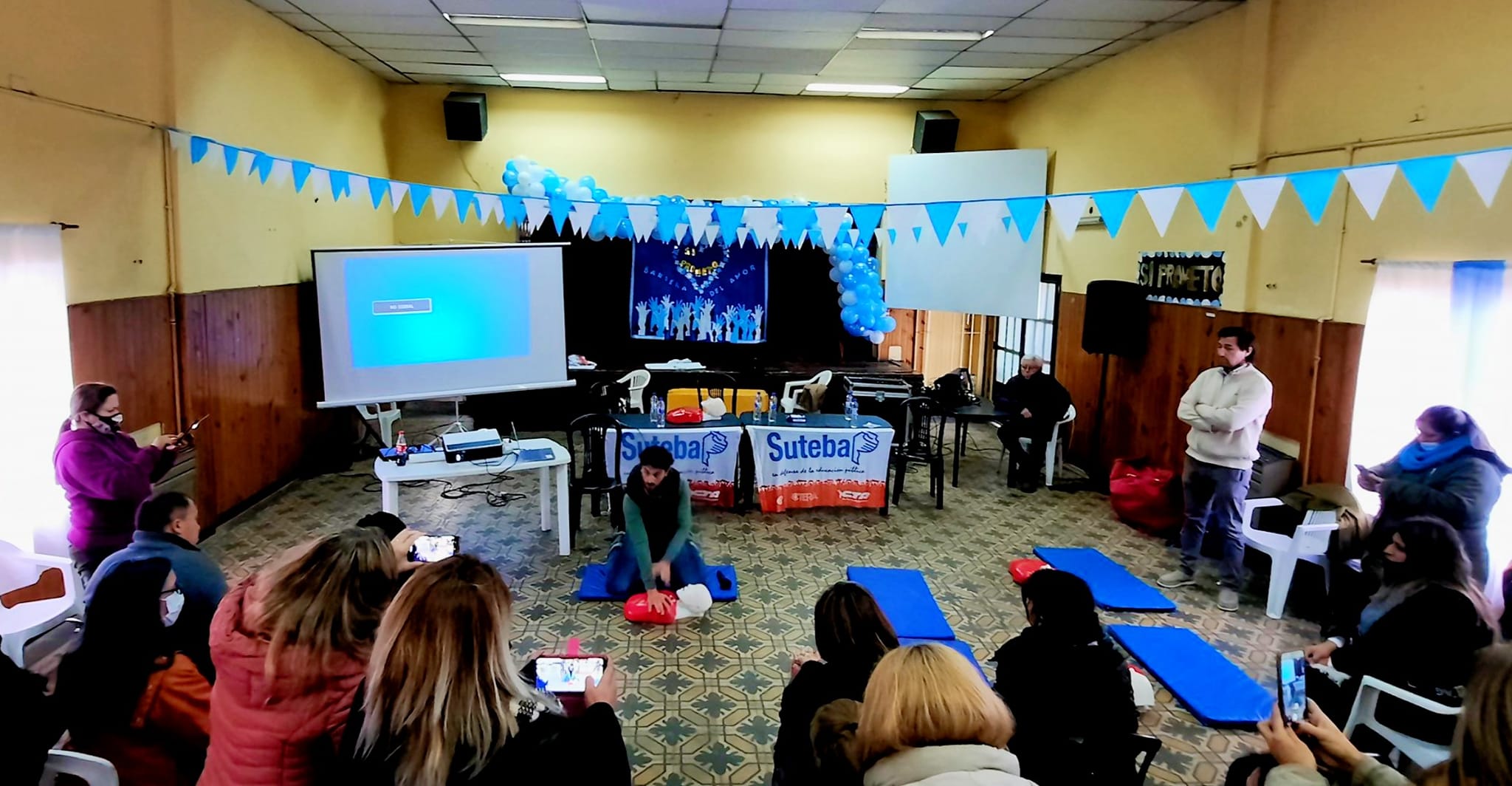 En SUTEBA se realizan capacitaciones para los Equipos de sus Centros de Salud. También se llevan adelante jornadas de formación para lxs Docentes, referidos a Primeros Auxilios y RCP en el marco del Plan de Prevención de Riesgo, Artículo 115 del Reglamento de Instituciones Educativas.
