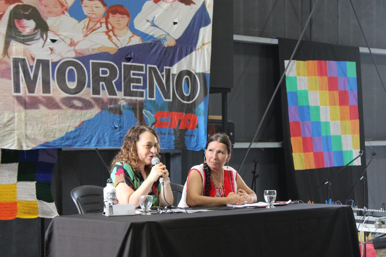 En la apertura, junto al compañero Jesús Espíndola, Secretario General del SUTEBA Moreno, participó María Laura Torre, Secretaria General Adjunta provincial; Mariel Fernández, Intendenta de Moreno, quien nos contó las políticas que se vienen desarrollando en el distrito relacionadas con la Interculturalidad. La exposición estuvo a cargo de Sofía Thisted, Doctora en Ciencias de la Educación e Investigadora, y Claudia Torres, a cargo del área municipal de interculturalidad.